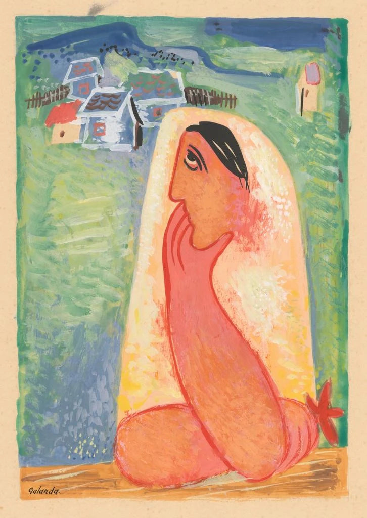 "Dedinanka" è un'opera che celebra la semplicità e la bellezza della vita rurale in Slovacchia. Mikuláš Galanda vi dipinge scene della vita quotidiana con una sensibilità toccante, catturando i gesti dei personaggi in un contesto naturale. I colori terrosi e le sfumature dolci evocano il calore e l'autenticità della campagna. La composizione, allo stesso tempo dinamica e armoniosa, trasporta lo spettatore in un mondo dove il tempo sembra fermarsi. Galanda riesce a immortalare l'essenza della vita contadina, offrendo una visione poetica e nostalgica del suo paese natale.