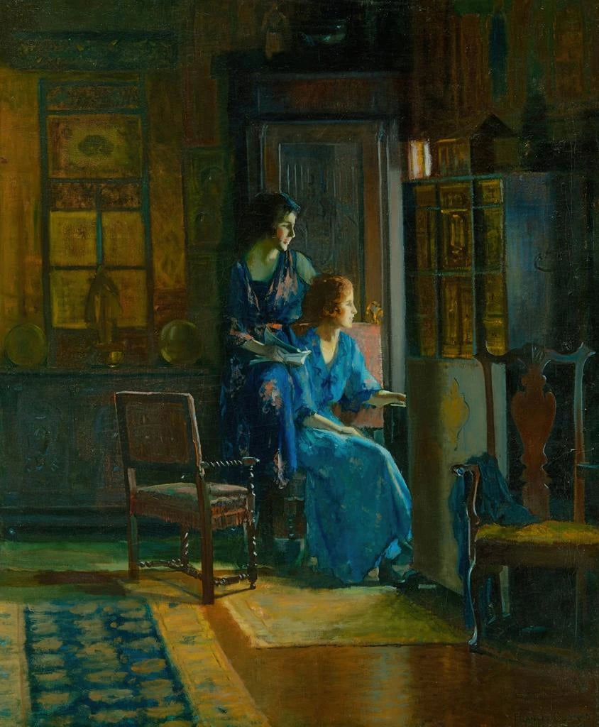 Francis Coates Jones, nato nel 1857, fu influenzato dai movimenti artistici del suo tempo, in particolare il realismo e l'impressionismo. Formatosi all'Accademia di Belle Arti della Pennsylvania, seppe integrare le tecniche dei suoi predecessori sviluppando uno stile personale unico. Il suo interesse per le scene di vita quotidiana e i ritratti di donne testimoniano una sensibilità particolare verso il mondo femminile e le sue sfumature. Jones fu anche un membro attivo della comunità artistica, partecipando a numerose esposizioni e contribuendo all'evoluzione dell'arte americana. La sua opera continua a ispirare molti artisti contemporanei, che lo vedono come un precursore nella rappresentazione delle emozioni umane