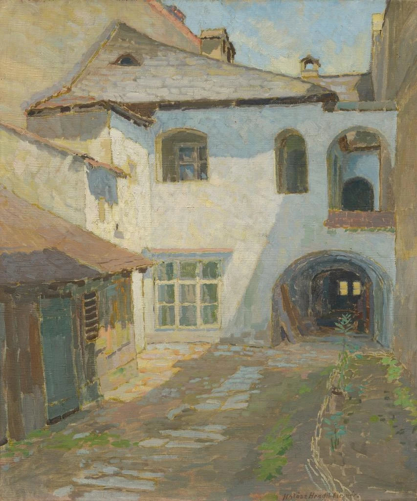 Reproduction À l'intérieur de la cour - Elemér Halász-Hradil – Introduzione affascinante