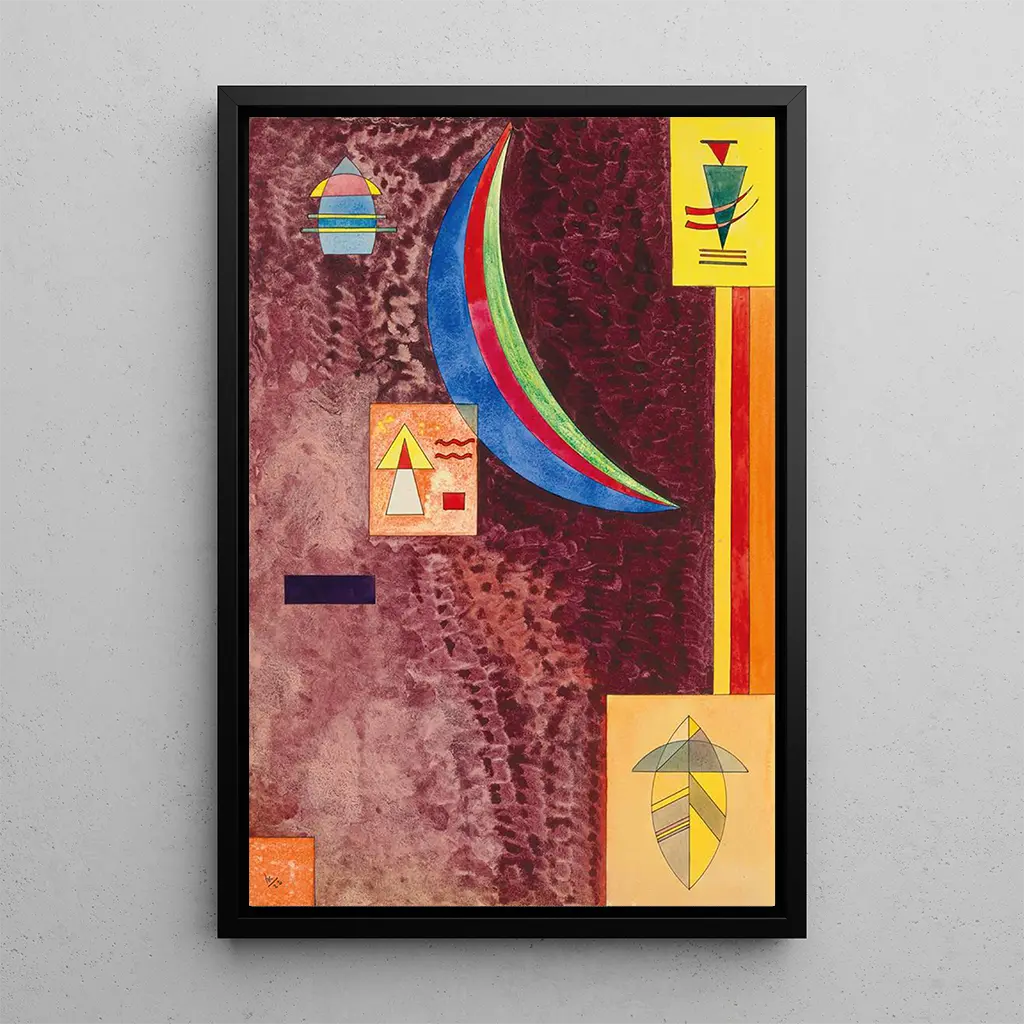 In "Aigu", Wassily Kandinsky ci offre un'opera in cui le forme geometriche si incontrano in un dialogo vibrante. Le linee angolari e i colori vivaci si intrecciano per creare una composizione allo stesso tempo dinamica ed equilibrata. L'uso di tonalità contrastanti, come il rosso vivo e il nero profondo, accentua l'intensità dell'opera, mentre le forme sembrano muoversi e vibrare sulla tela. Questo pezzo, intriso di un'energia palpabile, invita lo spettatore a immergersi in un mondo in cui l'astrazione diventa un'esperienza sensoriale unica.