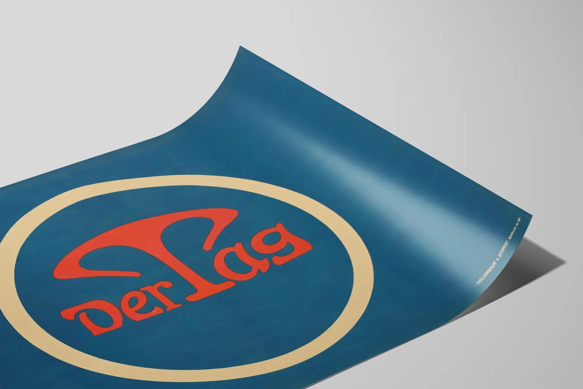Cette affiche vintage intitulée « Der Tag » est une pièce unique de décoration murale idéale pour les amateurs de design graphique rétro et les collectionneurs d'art visuel. Son design épuré met en valeur un cercle beige sur un fond bleu profond, au centre duquel apparaît une inscription rouge stylisée « der Tag », dont la lettre "T" est transformée en une forme graphique originale. Ce choix de couleurs primaires — le rouge, le beige et le bleu — crée un contraste saisissant qui capte immédiatement l'attention, apportant une touche rétro et élégante à tout intérieur. Cette affiche se distingue par son minimalisme et son impact visuel fort, très représentatif des créations graphiques publicitaires des années 1960. Elle incarne une esthétique simple mais efficace, alliant typographie audacieuse et composition géométrique. Le style graphique employé est parfait pour rehausser un espace moderne ou vintage, que ce soit dans un salon, une salle à manger, un bureau ou un couloir. Posée sur un mur uni, cette décoration murale devient un élément central et dynamique qui invite à la contemplation et à la discussion. Sa simplicité offre une grande polyvalence d'installation : elle peut se combiner aisément avec d'autres affiches ou posters dans un style rétro ou épuré, ou bien être mise en valeur seule pour un effet plus dramatique. Fabriquée avec un papier de qualité, cette affiche s'adresse aux passionnés de décoration murale désireux d'ajouter une touche d'histoire et d'authenticité à leur intérieur. Son cadre circulaire et ses couleurs sobres mais marquantes reflètent une vision graphique audacieuse qui reste pertinente dans la décoration contemporaine. Que vous soyez collectionneur de posters anciens ou à la recherche d’une pièce graphique forte pour votre maison, cette affiche « Der Tag » offre une harmonie parfaite entre simplicité et force visuelle. Elle symbolise aussi un regard sur le design graphique dans son époque, tout en apportant une ambiance chaleureuse et stylée à votre espace de vie ou de travail.
