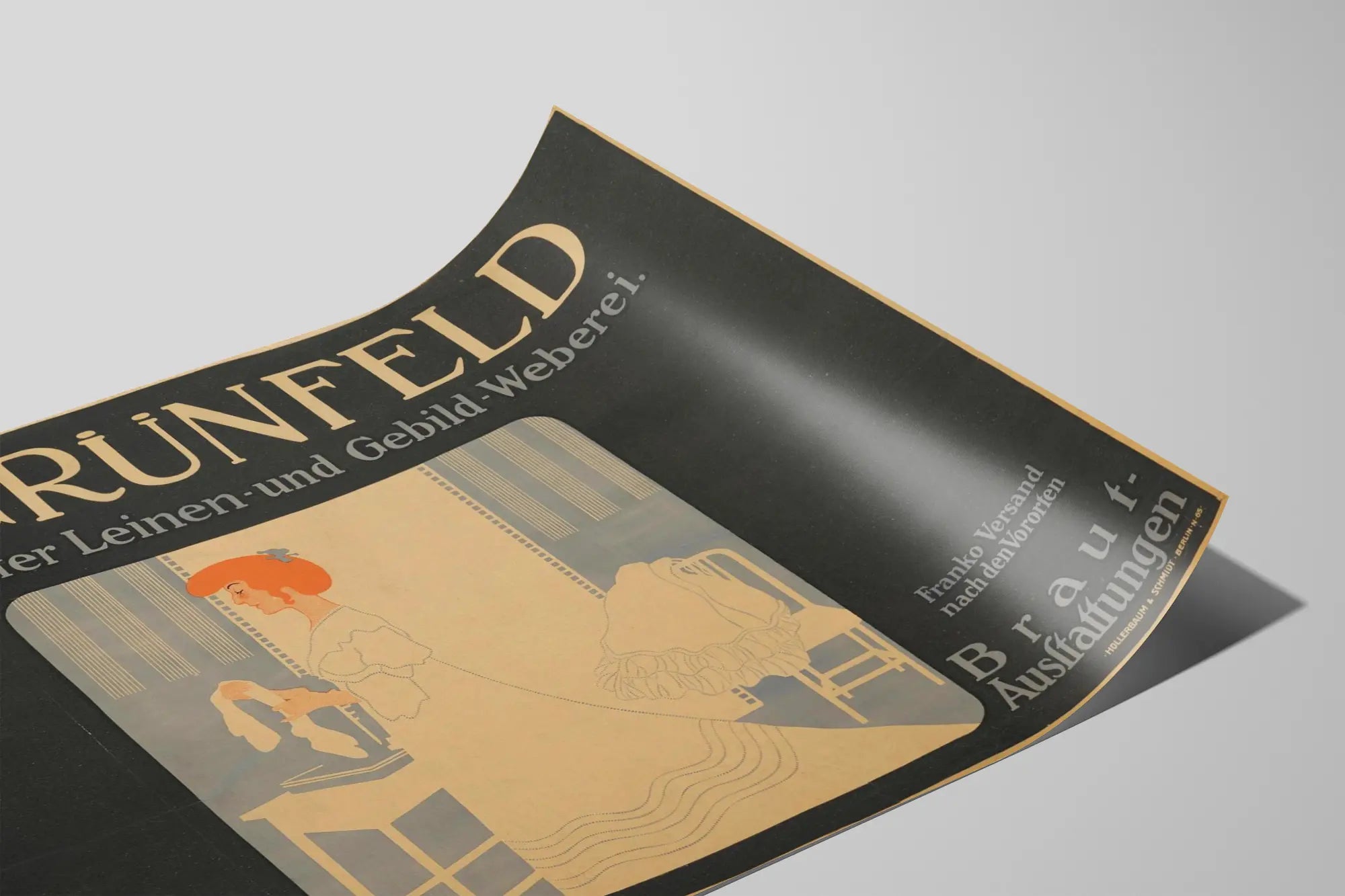 Affiche vintage F.V. Grünfeld Landshuter Leinen und Gebild Weberei