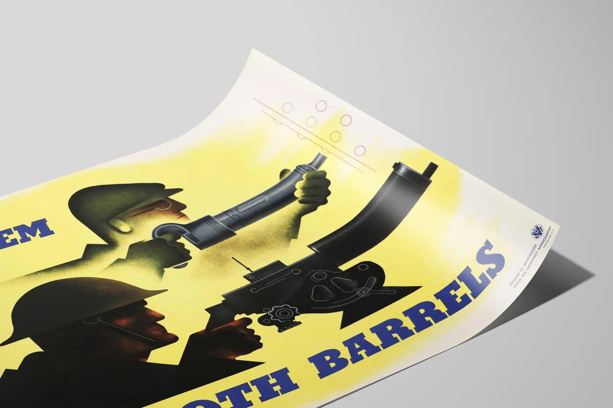 Affiche vintage Guerre - Give 'Em Both Barrels