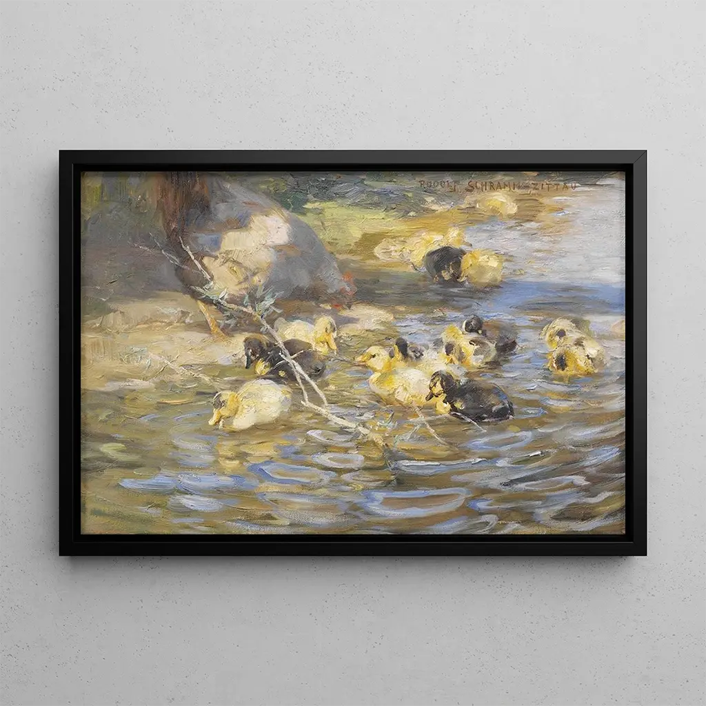 Reproduction Canards : une scène bucolique pleine de vie La stampa d'arte Canards ci immerge in un quadro vivente, dove la natura fiorisce sotto il pennello di Rudolf Schramm-Zittau. I canards, rappresentati nella loro piena magnificenza, si muovono in un ambiente acquatico sereno, circondati da vegetazione lussureggiante. I colori vivaci e i dettagli delicati catturano l'essenza della fauna, creando un'atmosfera pacifica e gioiosa. Ogni colpo di pennello sembra infondere una vita nuova a questi uccelli, invitando lo spettatore ad apprezzare la bellezza semplice della natura. Rudolf Schramm-Zittau : un artista al cuore della natura Rudolf Schramm-Zittau, attivo all'inizio del XX secolo, è riconosciuto per il suo talento nel rappresentare la fauna e la flora con una precisione notevole. Influenzato dal movimento naturalista, ha saputo catturare l'essenza stessa dei suoi soggetti, rendendo omaggio alla bellezza del mondo animale. La sua opera si distingue per una particolare attenzione ai dettagli e una palette di colori vibranti, testimonianza del suo amore per la natura. Come artista, Schramm-Zittau ha contribuito a sensibilizzare il pubblico alla conservazione dell'ambiente attraverso le sue illustrazioni affascinanti. Una acquisizione decorativa con molteplici vantaggi Scegliere una stampa d'arte di Canards significa aggiungere un tocco di natura alla vostra decorazione d'interni. Che sia in un soggiorno, una sala da pranzo o un ufficio, questa tela porta un'atmosfera calda e accogliente. La qualità di stampa, fedele all'opera originale, garantisce un'attrattiva estetica indiscutibile. Integrando questa tela nel vostro spazio, create un ambiente in cui la bellezza della natura è celebrata, offrendo al contempo una fonte di ispirazione e serenità quotidiana.