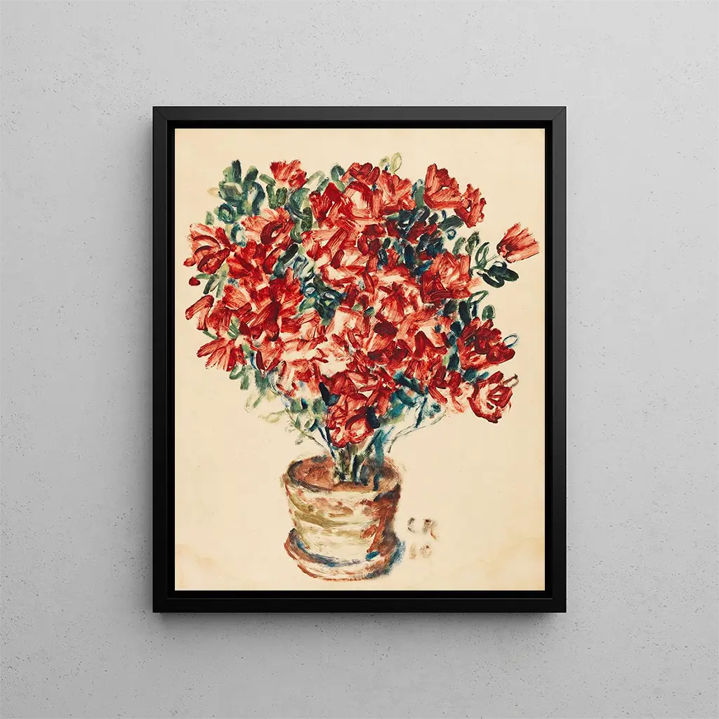 Lo stile di Christian Rohlfs è allo stesso tempo audace e poetico, mescolando impressionismo ed espressionismo. In "Azalée", utilizza una tavolozza di colori vibranti che evocano il calore e la luminosità della primavera. I colpi di pennello sono larghi e generosi, creando una texture che dà vita ai fiori. Questo quadro non si limita a rappresentare le azalée, le interpreta, le trasforma in un'esplosione di colori e forme. La composizione è accuratamente orchestrata, ogni elemento è posizionato con un'intenzione che guida lo sguardo dello spettatore. Rohlfs riesce a creare un'atmosfera immersiva dove ci si sente quasi trasportati in un giardino rigoglioso, dove i fiori sbocciano in tutta la loro magnificenza. Questa opera è una vera ode alla natura, una celebrazione della bellezza effimera che ci circonda.