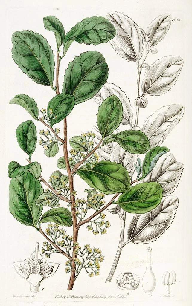 L'Azara dentata, con i suoi fiori gialli vivaci e il fogliame rigoglioso, evoca un giardino segreto dove la natura si svela in tutta la sua magnificenza. Questa stampa d'arte di Sydenham Edwards cattura la bellezza effimera di questa pianta, utilizzando colori vivaci e una tecnica di incisione raffinata. La composizione è accuratamente equilibrata, mettendo in risalto i dettagli delle foglie dentate e dei fiori delicati. L'atmosfera che ne deriva invita alla contemplazione, trasportando lo spettatore in un mondo in cui botanica e arte si incontrano con grazia.