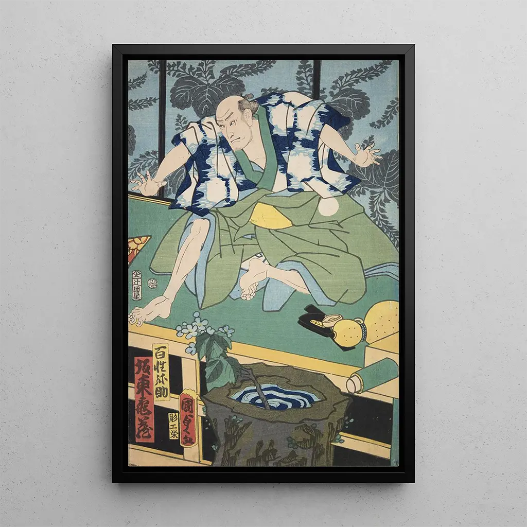 La stampa d'arte Azuma nishikie Pl14 si distingue per la sua rappresentazione poetica delle scene della natura e della vita quotidiana in Giappone. I colori pastello, mescolati a tocchi più vivaci, creano un'atmosfera dolce e sognante. I motivi floreali e i personaggi in movimento sembrano catturare un istante congelato nel tempo, invitando alla contemplazione. Ogni elemento di questa tela è un omaggio alla bellezza effimera della vita, riflettendo l'armonia tra l'uomo e il suo ambiente, un tema ricorrente nell'arte giapponese.