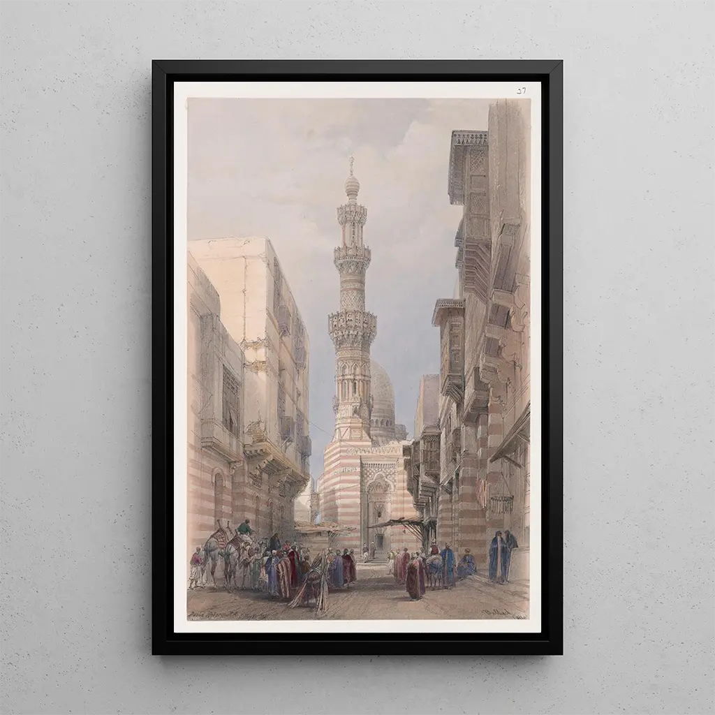 La stampa d'arte del quadro "Bullack Le Caire" di David Roberts ci trasporta nel cuore di una scena di vita quotidiana al Cairo. I personaggi, vestiti con abiti tradizionali, si mescolano agli asini carichi di merci, creando una dinamica vivace e colorata. Le tonalità terrose e le ombre delicate conferiscono profondità all'opera, mentre la tecnica della pittura ad olio permette di catturare i dettagli minuziosi dei volti e delle espressioni. Questa tela evoca non solo un momento congelato nel tempo, ma anche l'anima di una città in cui ogni angolo di strada racconta una storia.