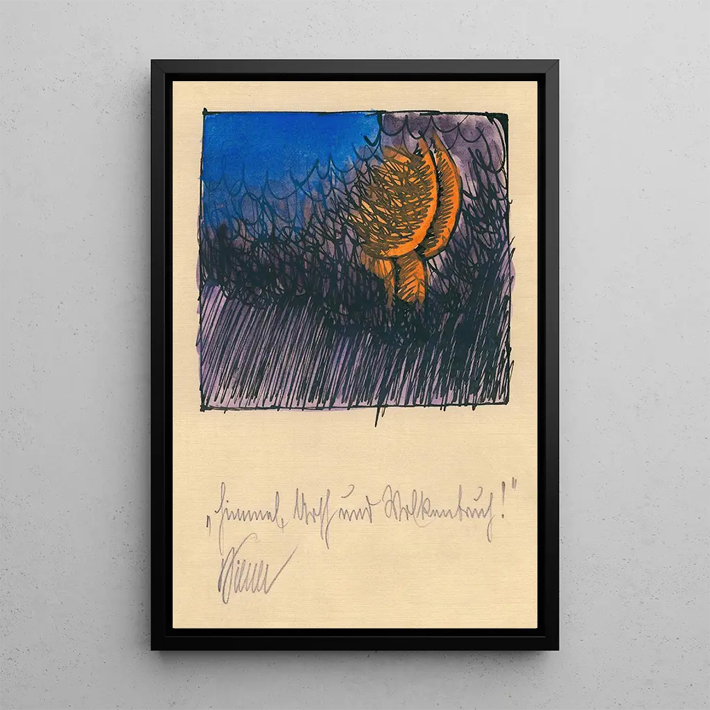 Ciel cul et déluge : un tourbillon de couleurs et d'émotions Dans cette œuvre saisissante, Karl Wiener nous plonge dans un univers tumultueux où le ciel semble se déchirer sous l'effet d'une tempête imminente. Les couleurs vives et contrastées, mêlant des nuances de bleu profond et de rouge éclatant, créent une atmosphère à la fois dramatique et captivante. La technique de Wiener, qui allie habilement le mouvement et la lumière, donne vie à ce tableau, rendant presque palpable la tension qui règne dans l'air. Les formes tourbillonnantes et les éclats de lumière évoquent la puissance de la nature, tout en invitant le spectateur à une réflexion sur la fragilité de l'existence humaine face aux forces élémentaires. Karl Wiener : un artiste au cœur du mouvement expressionniste Karl Wiener, peintre expressionniste actif au début du XXe siècle, a su capturer l'essence des émotions humaines à travers son art. Influencé par les bouleversements sociaux et politiques de son époque, il a développé un style unique qui se caractérise par des couleurs audacieuses et des formes dynamiques. Son œuvre, bien que moins connue que celle de certains de ses contemporains, témoigne d'une profonde sensibilité et d'une maîtrise technique indéniable. Wiener a souvent exploré des thèmes liés à la nature et à la condition humaine, faisant de lui une figure importante du mouvement expressionniste, qui cherchait à exprimer des sentiments intenses plutôt qu'à reproduire la réalité de manière fidèle. Une acquisition décorative aux multiples atouts La reproduction de "Ciel cul et déluge" est une pièce maîtresse qui saura enrichir votre intérieur, que ce soit dans un salon, un bureau ou une chambre. Sa qualité d'impression garantit une fidélité remarquable aux couleurs et aux détails de l'œuvre originale, permettant de ressentir toute la puissance émotionnelle que Karl Wiener a voulu transmettre. Ce tableau, avec son attrait esthétique indéniable, devient un véritable point focal de la décoration, suscitant l'admiration de vos invités et offrant une source d'inspiration quotidienne. Ajouter cette toile à votre collection, c'est faire le choix d'une œuvre qui allie beauté et profondeur, tout en apportant une touche d'originalité à votre espace.