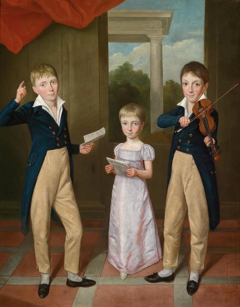 Nel ricco e vibrante universo della storia dell'arte, alcune opere riescono a catturare l'essenza stessa dell'infanzia, dell'innocenza e della gioia. "Concert de Trois enfants dans une maison" di Antoine-Jean Gros è una di queste creazioni che, con la sua apparente semplicità, evoca emozioni profonde e universali. Quest'opera, che rappresenta una scena intima in cui tre bambini si dedicano alla musica, ci trasporta in un mondo in cui la quotidianità si mescola alla magia dell'infanzia. Contemplando questa stampa d'arte, si percepisce un invito a riscoprire i piaceri semplici della vita, attraverso il prisma di un artista che ha saputo immortalare un momento fugace con una delicatezza senza pari. Stile e unicità dell’opera Lo stile di Antoine-Jean Gros si distingue per la sua attenzione meticolosa ai dettagli e il uso sottile della luce. In "Concert de Trois enfants dans une maison", i volti dei bambini brillano di una freschezza e di un'espressività che catturano lo spettatore. Ogni gesto, ogni sorriso, è un'ode alla spontaneità dell'infanzia. Gros, maestro del colore, utilizza tonalità morbide che creano un'atmosfera calda e accogliente. La composizione, centrata sui bambini, permette di percepire la convivialità della scena. Gli elementi circostanti, sebbene presenti, non oscurano l'essenziale: l'interazione tra i bambini e la loro passione per la musica. Quest'opera è così un riflesso della vita quotidiana, sublimato dall'arte, dove ogni dettaglio contribuisce alla narrazione visiva. L’artista e la sua influenza Antoine-Jean Gros, pittore francese del primo Ottocento, è spesso riconosciuto per le sue opere storiche e i suoi ritratti, ma ha anche saputo affermarsi nel campo delle scene di genere. Il suo approccio innovativo e la capacità di catturare momenti di vita gli hanno permesso di distinguersi nel panorama artistico del suo tempo. Influenzato dal neoclassicismo, Gros ha saputo infondere una sensibilità romantica, rendendo le sue opere accessibili e toccanti. "Concert de Trois enfants dans une maison" illustra perfettamente questa dualità, unendo una tecnica raffinata a un'emozione palpabile. La sua influenza perdura