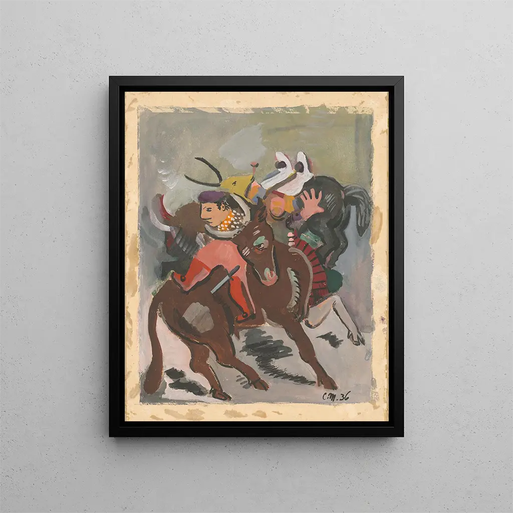 La tela "Corrida" di Cyprian Majernik cattura l'essenza stessa della passione e del dramma, incarnando una scena in cui l'arte della corrida si mescola a una rappresentazione estetica sorprendente. In quest'opera, l'artista riesce a trascendere il semplice spettacolo della corrida per farne una vera e propria ode alla vita, alla morte e al coraggio. I colori vivaci e i movimenti dinamici dei personaggi immergono lo spettatore in un universo in cui ogni colpo di pennello racconta una storia, dove la tensione palpabile tra il torero e il toro si legge sui volti dei protagonisti. Lungi dall'essere una semplice rappresentazione, quest'opera invita a riflettere sulla complessità delle emozioni umane e sulla bellezza tragica della lotta.