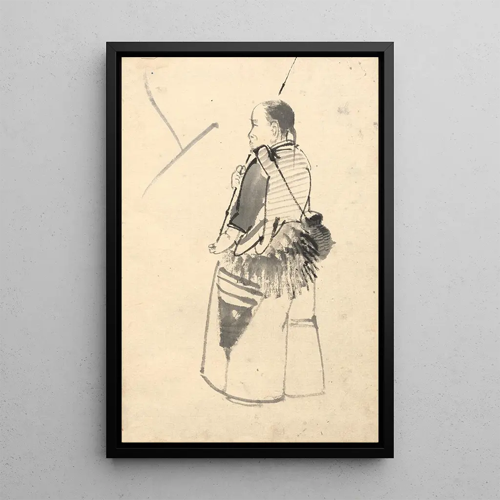 La stampa d'arte "Danseur in costume da pescatore" di Kono Bairei è un'opera vibrante che cattura l'essenza del movimento e della tradizione. I colori vivaci del costume contrastano con lo sfondo più sobrio, mettendo in risalto la dinamica del personaggio in piena danza. La tecnica raffinata dell'inchiostro su carta permette di rendere le texture dei tessuti e la fluidità dei gesti, creando un'atmosfera vivace e festosa. Questa tela invita a immergersi nell'universo culturale giapponese, dove la danza e la musica sono celebrate con passione ed eleganza.