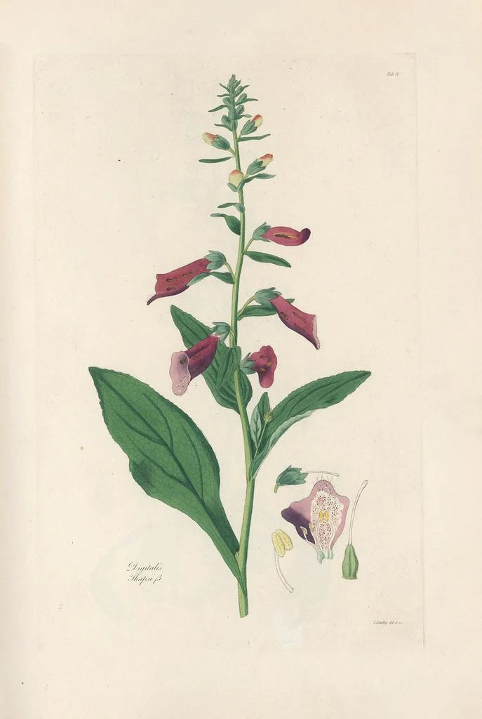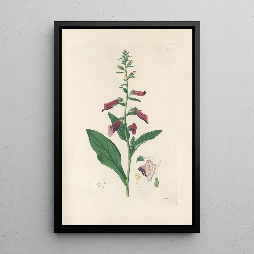 Nella riproduzione del quadro Digitalium monographia Pl04, John Lindley ci immerge nel cuore di una natura rigogliosa. I colori vivaci e i dettagli minuziosi delle piante illustrate rivelano una tecnica di acquerello perfezionata, offrendo un'atmosfera al tempo stesso scientifica e poetica. Ogni foglia, ogni petalo è riprodotto con una precisione che invita all'osservazione attenta, come se si potessero quasi percepire i profumi dei fiori. Quest'opera, al crocevia tra arte e botanica, ci trasporta in un universo in cui la bellezza naturale è celebrata con passione.