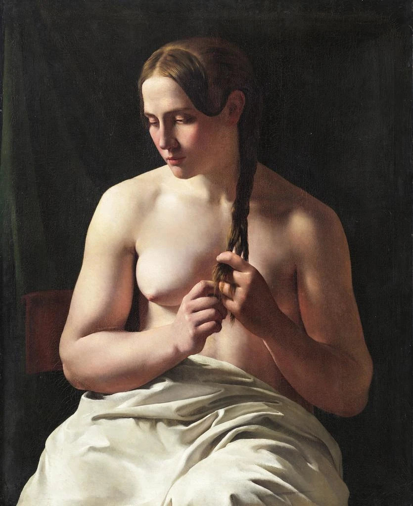Una donna che arriccia i capelli - Ludvig August Smith Source: Une femme plissant ses cheveux - Ludvig August Smith