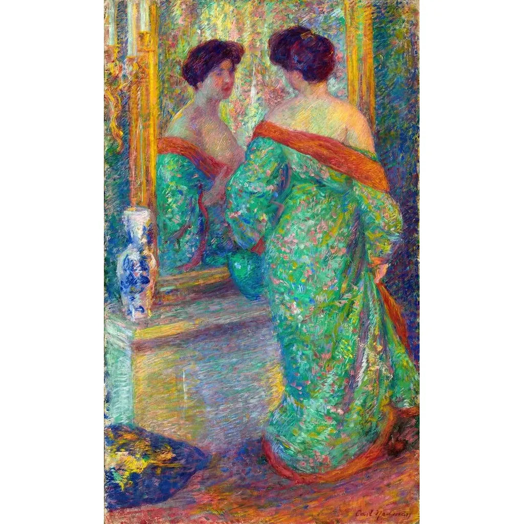 Dame riflessa nello specchio: un'esplorazione della bellezza interiore In questa opera affascinante, la composizione mette in evidenza una donna elegante, immersa in un'introspezione silenziosa. I colori delicati e le sfumature raffinate creano un'atmosfera serena, mentre la luce gioca sottilmente sulle superfici riflettenti dello specchio. La tecnica di Carl Newman, che combina realismo e impressionismo, invita lo spettatore a riflettere sulla dualità dell'immagine e della realtà. La signora, sia presente che distante, sembra catturare un momento di riflessione personale, rendendo questa stampa d'arte del quadro "Dame riflessa nello specchio" ancora più toccante. Carl Newman: un maestro del ritratto all'inizio del XX secolo Carl Newman, artista americano attivo all'inizio del XX secolo, è riconosciuto per la sua capacità di catturare l'essenza umana attraverso i suoi ritratti. Influenzato dai movimenti artistici del suo tempo, ha saputo integrare elementi del realismo esplorando tecniche più moderne. Il suo lavoro si distingue per un'attenzione particolare ai dettagli e una sensibilità alla luce, che gli ha permesso di creare opere che risuonano ancora oggi. "Dame riflessa nello specchio" è un esempio emblematico del suo stile, testimonianza dell'importanza dell'introspezione in un'epoca segnata da cambiamenti sociali e culturali. Un'acquisizione decorativa con molteplici vantaggi Questa stampa d'arte del quadro "Dame riflessa nello specchio" è una scelta ideale per arricchire il vostro spazio abitativo. Che si tratti di un soggiorno, di un ufficio o di una camera da letto, porta un tocco di eleganza e raffinatezza. La qualità della stampa garantisce fedeltà ai colori e ai dettagli dell'opera originale, offrendo allo stesso tempo un indiscusso fascino estetico. Integrando questa tela nella vostra decorazione, create un punto focale affascinante che suscita curiosità e ammirazione tra i vostri ospiti, aggiungendo anche una dimensione artistica al vostro interno.