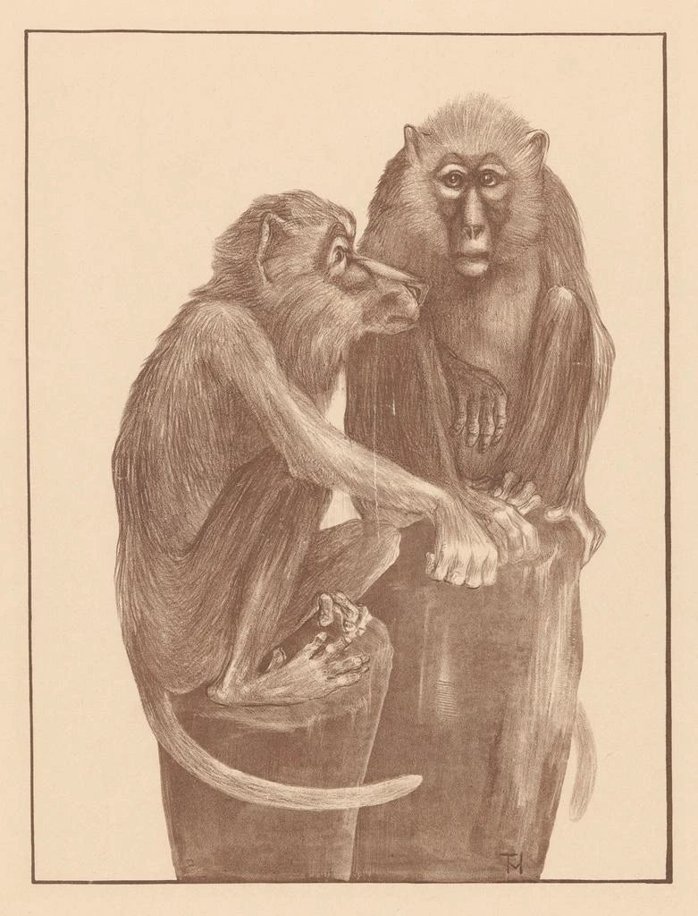 Due scimmie cani su ceppi d'albero - Theo van Hoytema