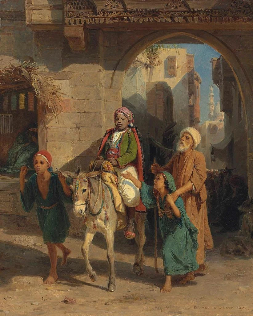 Entrare nella città - Édouard Girardet – Introduzione affascinante Nel affascinante universo dell'arte, alcune opere riescono a catturare l'essenza di un'epoca evocando emozioni universali. "Entrare nella città - Édouard Girardet" è una di queste creazioni che, con il suo realismo sorprendente e la sua composizione armoniosa, trasporta lo spettatore nel cuore di una scena vibrante di vita. Quest'opera, ricca di dettagli e colori, ci invita a esplorare non solo l'architettura della città, ma anche l'anima dei suoi abitanti. Immergendoci in questa tela, percepiamo l'effervescenza di una città in movimento, un luogo dove ogni angolo racconta una storia. Stile e unicità dell’opera Lo stile di Édouard Girardet si distingue per un realismo meticoloso, un'attenzione particolare ai dettagli e una palette di colori vivaci che infondono una dinamica palpabile alle sue composizioni. In "Entrare nella città", ogni personaggio, ogni edificio e ogni sfumatura di luce sono accuratamente orchestrati per creare un'atmosfera allo stesso tempo vivace e immersiva. Le figure umane, che siano in movimento o immobili in gesti quotidiani, aggiungono una dimensione narrativa alla scena. Girardet eccelle nel catturare le interazioni umane, rendendo così la sua opera profondamente relazionabile. Il modo in cui gioca con la luce e l'ombra accentua il senso di profondità, mentre le prospettive abilmente scelte ci invitano a muoverci in questo spazio pittorico, come se fossimo dei passeggiatori nelle strade di questa città animata. L’artista e la sua influenza Édouard Girardet, pittore svizzero del XIX secolo, ha saputo imporsi nel mondo dell'arte grazie alla sua visione unica e al suo talento notevole. Influenzato dai movimenti realistici della sua epoca, ha saputo unire tradizione e innovazione, ispirandosi ai grandi maestri della pittura. La sua capacità di rappresentare la vita quotidiana con tanta vivacità e verità ha segnato i suoi contemporanei e continua a ispirare molti artisti oggi. Girardet è stato anche un attento osservatore dei cambiamenti sociali, e le sue opere testimoniano di un'epoca in piena trasformazione. Catturando scene di vita urbana, ha aperto la strada a una nuova comprensione dell'arte come riflesso delle preoccupazioni