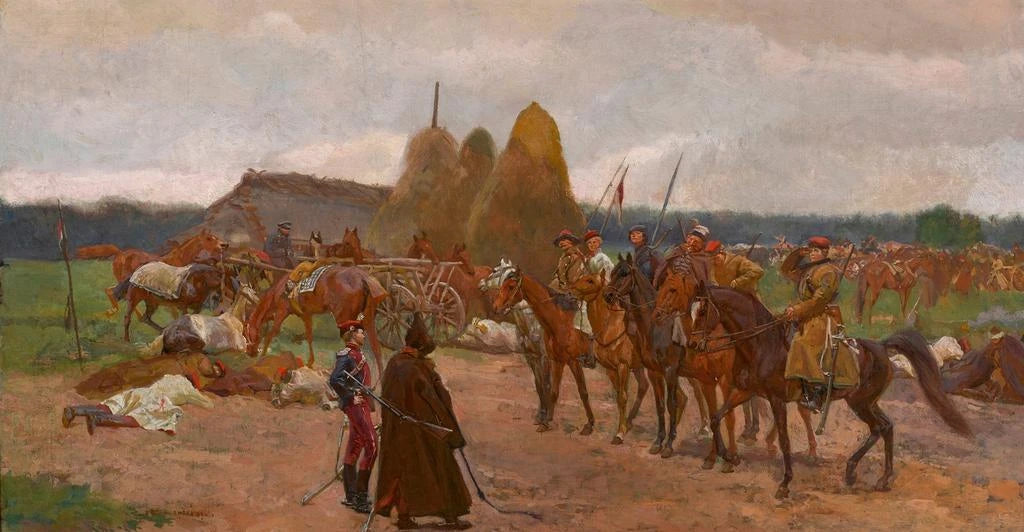 Józef Chełmoński, artista polacco del XIX secolo, è riconosciuto per le sue opere che evocano le lotte e le aspirazioni del suo popolo. Influenzato dagli eventi tumultuosi della sua epoca, è riuscito a tradurre attraverso la sua pittura le emozioni e i combattimenti della nazione polacca. Chełmoński è stato anche segnato dal realismo, che gli ha permesso di creare opere di grande forza narrativa. "Episodio di insurrezione" si inserisce in questo contesto, testimonianza del suo impegno verso il suo paese e della volontà di far sentire la voce degli oppressi attraverso l'arte.