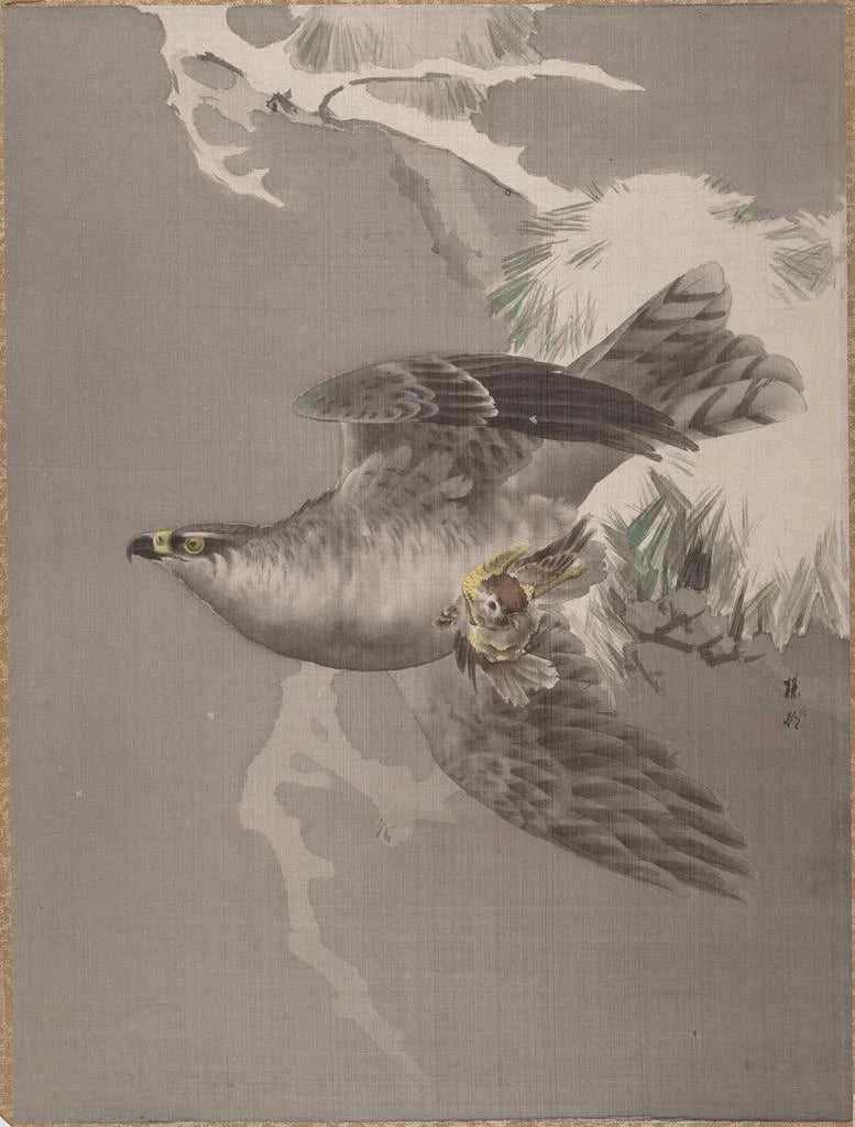 Falco che tiene un piccolo uccello - Okada Baison