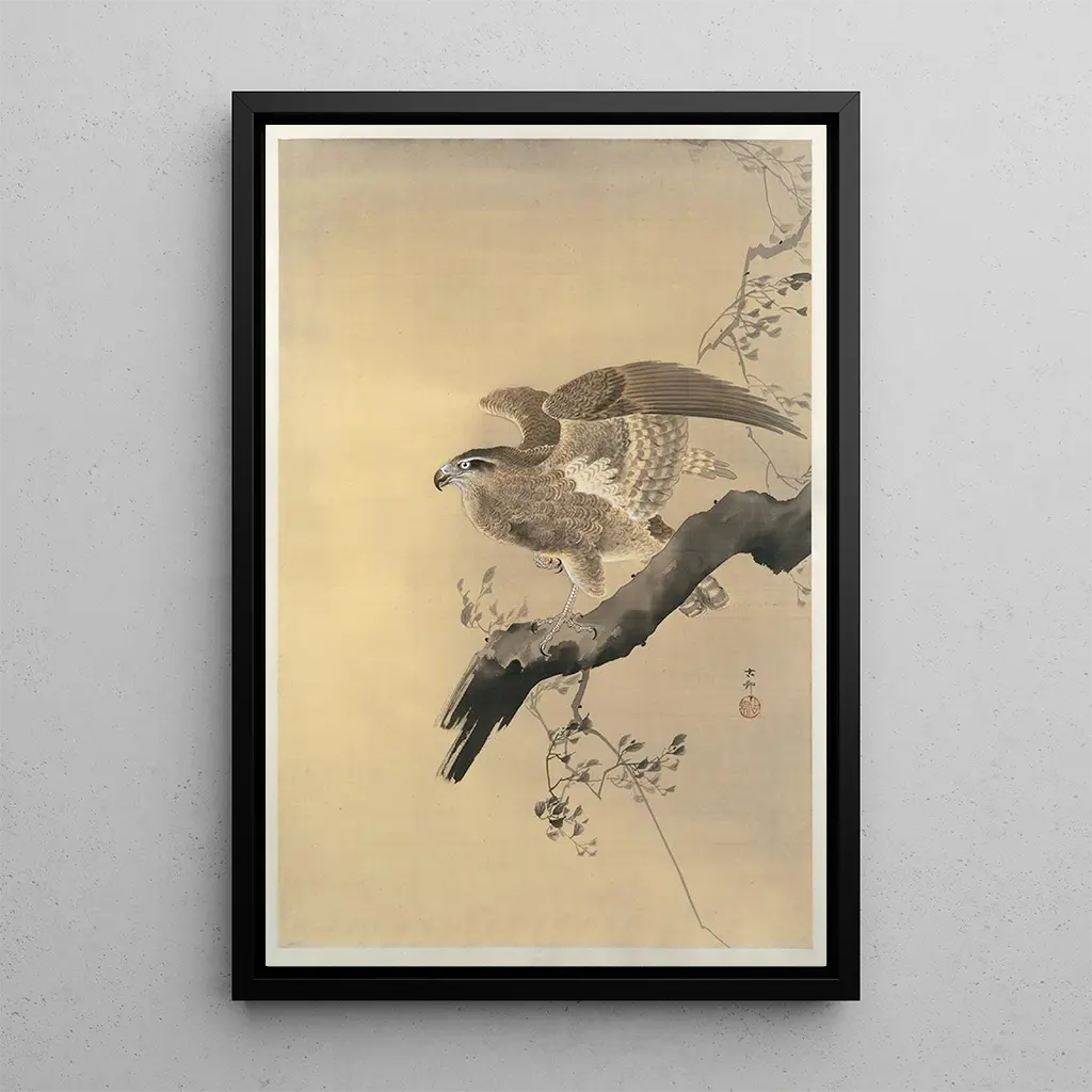Le Faucon d'Ohara Koson est une œuvre qui évoque la majesté et la puissance de cet oiseau de proie. Avec des couleurs vives et des détails précis, Koson parvient à capturer l'essence même de cet animal, à la fois redoutable et gracieux. La composition dynamique de l'œuvre, où le faucon semble prêt à s'envoler, crée une atmosphère de mouvement et de liberté. La technique de la stampa d'arte, caractéristique de l'art japonais, permet de rendre hommage à la beauté de la nature tout en offrant une vision poétique de la vie sauvage.