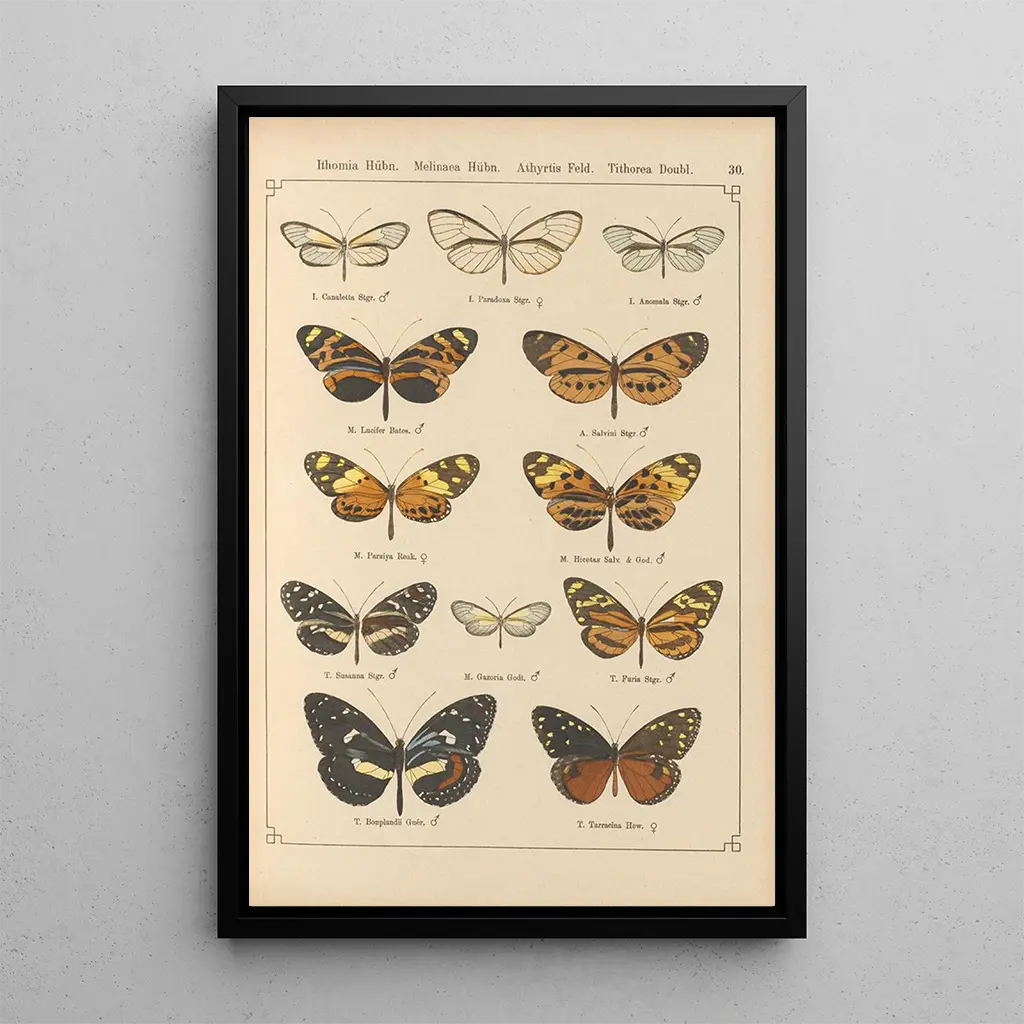 La stampa d'arte di "Papillons exotiques Pl030" di Otto Staudinger ci trasporta in un mondo affascinante dove i colori si intrecciano per celebrare la diversità delle specie. Ogni farfalla è rappresentata con una precisione notevole, mettendo in risalto i motivi delicati delle loro ali. Le tonalità vivaci, che vanno dai verdi brillanti ai rossi profondi, creano un'atmosfera dinamica e vivace. L'artista riesce a catturare l'essenza stessa di questi insetti, evocando una sensazione di leggerezza e movimento, come se le farfalle fossero pronte a volare via dalla tela in qualsiasi momento.
