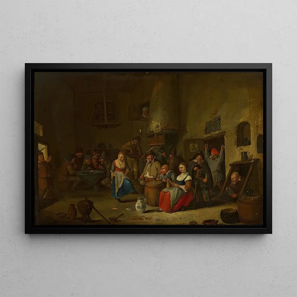 Festività in una taverna: una scena di convivialità vibrante In questa stampa d'arte di "Festività in una taverna", Hubert van Ravesteyn dipinge un'atmosfera gioiosa e animata, dove i personaggi si dedicano a festeggiamenti. I colori caldi dominano, con tonalità dorate e brune che evocano la luce soffusa delle candele e delle lanterne. La tecnica dell'artista, che combina olio su tela, permette di catturare i dettagli dei volti e degli abiti, aggiungendo una profondità emotiva alla scena. Le espressioni dei commensali, tra risate e conversazioni, invitano lo spettatore a immergersi in questo momento di condivisione, creando una connessione senza tempo con la gioia umana. Hubert van Ravesteyn: un maestro del genere olandese Hubert van Ravesteyn, attivo nel XVII secolo, è un pittore olandese riconosciuto per le sue scene di genere. Influenzato dai maestri della sua epoca, ha saputo sviluppare uno stile che unisce realismo e sensibilità. Le sue opere, spesso incentrate su momenti della vita quotidiana, testimoniano un'osservazione minuziosa dei comportamenti umani. Van Ravesteyn è stato anche influenzato dalla tradizione fiamminga, integrando elementi della vita popolare nelle sue composizioni. Il suo patrimonio artistico risiede nella capacità di catturare l'essenza delle interazioni umane, facendo dei suoi dipinti testimoni preziosi della cultura del suo tempo. Un acquisto decorativo con molteplici vantaggi La stampa d'arte di "Festività in una taverna" è un pezzo decorativo ideale per diversi spazi, che si tratti di un soggiorno accogliente o di un ufficio ospitale. La qualità di stampa garantisce fedeltà ai dettagli dell'opera originale, permettendo di apprezzare ogni sfumatura di colore e ogni espressione. Integrando questa tela nella vostra decorazione, portate un tocco di eleganza e convivialità nel vostro interno. L'attrattiva estetica di questa tela non mancherà di suscitare conversazioni e di arricchire l'atmosfera del vostro spazio, rendendo questa stampa d'arte una scelta saggia per gli appassionati d'arte.