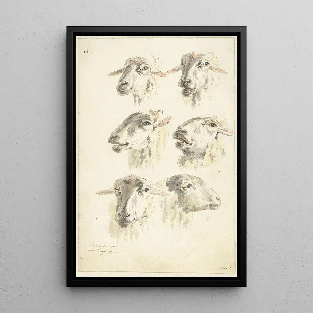 Quadro Feuille d'étude avec six têtes de mouton - Franciscus Andreas Milatz | Stampa d'arte