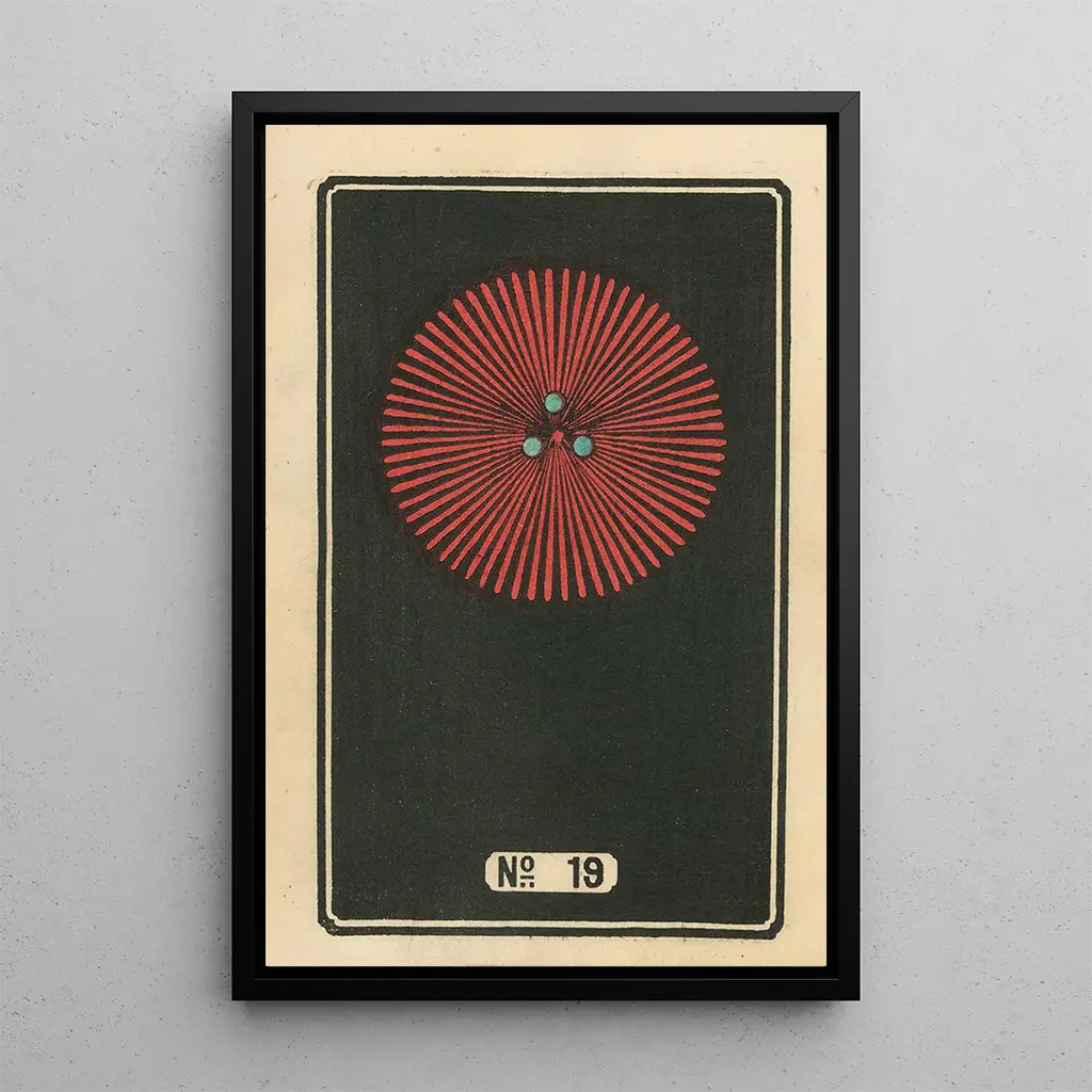 In questa riproduzione dell'opera "Feux d'artifice nocturnes n° 19", Jinta Hirayama ci immerge in un universo vibrante e fiabesco. Gli scoppiettii luminosi dei fuochi d'artificio illuminano il cielo notturno, creando un'atmosfera di festa e celebrazione. I colori vivaci, che vanno dai rossi profondi ai blu scintillanti, si mescolano armoniosamente, mentre le forme vorticosamente esplosive aggiungono una dinamica coinvolgente. La tecnica di Hirayama, che combina acquerello e inchiostro, permette di catturare la leggerezza e la magia di questi istanti fugaci, invitando lo spettatore a meravigliarsi di fronte a questo spettacolo effimero.