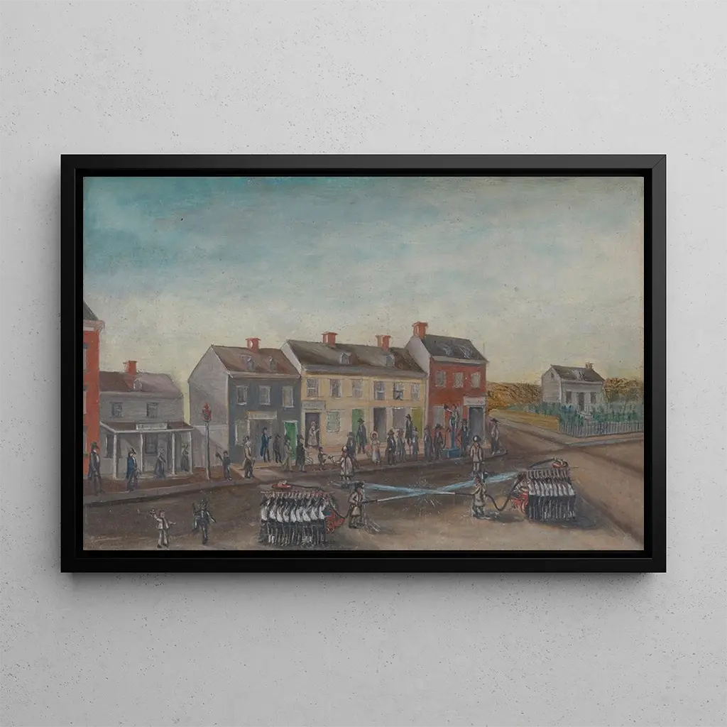 Giorno del bucato dei pompieri: un'istantanea della vita quotidiana In "Giorno del bucato dei pompieri", William P. Chappel cattura una scena vibrante e ricca di vita. I colori vivaci, che vanno dai rossi profondi ai blu rilassanti, creano un'atmosfera allo stesso tempo gioiosa e nostalgica. La tecnica di Chappel, che combina abilmente il realismo con un tocco di impressionismo, dà vita ai personaggi in piena azione. I pompieri, intenti a sistemare il loro equipaggiamento, sono rappresentati con un'energia tale che si percepisce quasi il movimento dell'acqua e il respiro del vento. Questa tela evoca non solo un momento di lavoro, ma anche un forte senso di comunità, rendendo omaggio a questi eroi quotidiani. William P. Chappel: un testimone della sua epoca William P. Chappel, attivo alla fine del XIX secolo e all'inizio del XX, è un artista americano il cui lavoro riflette le preoccupazioni sociali e culturali del suo tempo. Influenzato dal movimento realista, si è impegnato a rappresentare la vita quotidiana con un'autenticità toccante. Le sue opere, spesso incentrate su temi della vita urbana e dei mestieri, testimoniano un'epoca in cui i pompieri erano figure emblematiche della sicurezza e della solidarietà. Chappel è riuscito a immortalare questi momenti effimeri, facendo delle sue stampe d'arte delle finestre sul passato, celebrando al contempo il coraggio e la dedizione di questi uomini. Una stampa d'arte decorativa con molteplici virtù La riproduzione di "Giorno del bucato dei pompieri" è un pezzo decorativo che saprà arricchire qualsiasi ambiente, che sia un soggiorno, uno studio o una camera da letto. La qualità di stampa e la fedeltà all'opera originale garantiscono un fascino estetico indiscutibile. Integrando questa stampa d'arte nella tua decorazione, porti un tocco di storia e cultura, stimolando conversazioni sull'arte e sulla vita quotidiana. Questa tela, con i suoi colori vivaci e l'atmosfera dinamica, è una scelta ideale per chi desidera unire bellezza e significato nel proprio spazio di vita.