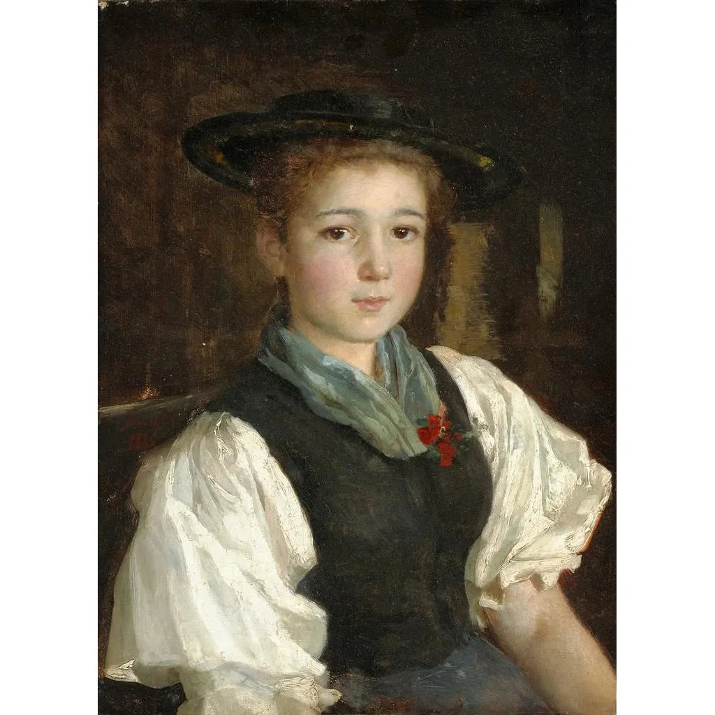 In questa stampa d'arte di "Giovane contadina", Albert Anker cattura con delicatezza l’innocenza e la bellezza della vita quotidiana rurale. La composizione mette in evidenza una giovane donna vestita con un abito tradizionale, il suo sguardo rivolto all’orizzonte, come se sognasse un futuro migliore. I colori morbidi e naturali, dominati da tonalità terrose e tocchi di verde, creano un’atmosfera rilassante. La tecnica dell’artista, mescolando realismo e impressionismo, dà vita a questa scena, rendendo quasi palpabile l’aria fresca della campagna. Questa stampa d'arte evoca un’armonia tra l’uomo e la natura, invitando lo spettatore a immergersi in un mondo di serenità.