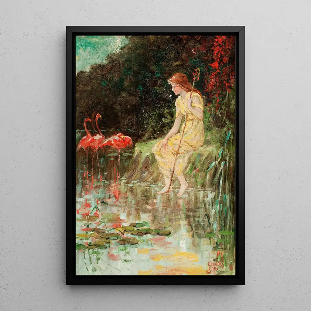 Quadro Giovane ragazza con fenicotteri rosa - Frederick Stuart Church | Stampa d'arte