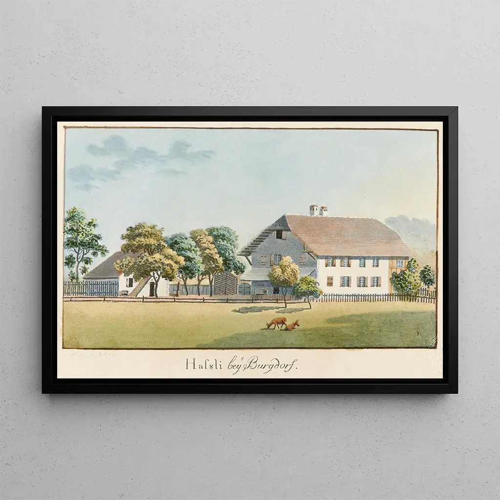 Hassli vicino a Burgdorf : un'immersione nella tranquillità alpina La stampa d'arte "Hassli vicino a Burgdorf" di Jakob Samuel Weibel evoca un paesaggio alpino pacifico, dove la natura si sboccia in tutta la sua magnificenza. Le tonalità verdi lussureggianti e le sfumature di blu del cielo creano un'atmosfera serena, propizia alla contemplazione. La tecnica di Weibel, che combina precisione e sensibilità, permette di percepire la freschezza dell'aria montana e la dolcezza delle luci. I dettagli degli alberi e delle montagne, così come la presenza discreta di un piccolo villaggio, invitano lo spettatore a immaginarsi a passeggiare in questo scenario idilliaco, lontano dal tumulto della vita moderna. Jakob Samuel Weibel : un maestro del paesaggio svizzero Jakob Samuel Weibel, attivo nel XIX secolo, è un pittore svizzero famoso per i suoi paesaggi alpini. Influenzato dal romanticismo, cerca di catturare la bellezza maestosa delle montagne svizzere, integrando elementi della vita rurale. Le sue opere, spesso intrise di malinconia, riflettono un'epoca in cui la natura era percepita come un rifugio e una fonte di ispirazione. Weibel è riuscito a immortalare scene della vita quotidiana in montagna, contribuendo così alla valorizzazione del patrimonio naturale e culturale della Svizzera. Il suo lavoro rimane un punto di riferimento per gli appassionati d'arte e di paesaggi alpini. Una scelta decorativa con molteplici vantaggi La stampa d'arte del quadro "Hassli vicino a Burgdorf" è una scelta decorativa perfetta per abbellire il vostro interno, che sia in un soggiorno, un ufficio o una camera da letto. La qualità di stampa e la fedeltà ai colori originali ne fanno un'opera d'arte che cattura lo sguardo e crea un'atmosfera rilassante. Integrando questa tela nella vostra decorazione, portate un tocco di serenità ed eleganza, celebrando allo stesso tempo la bellezza dei paesaggi svizzeri. Questo quadro, allo stesso tempo estetico e ispirante, arricchirà il vostro spazio evocando la tranquillità delle montagne.