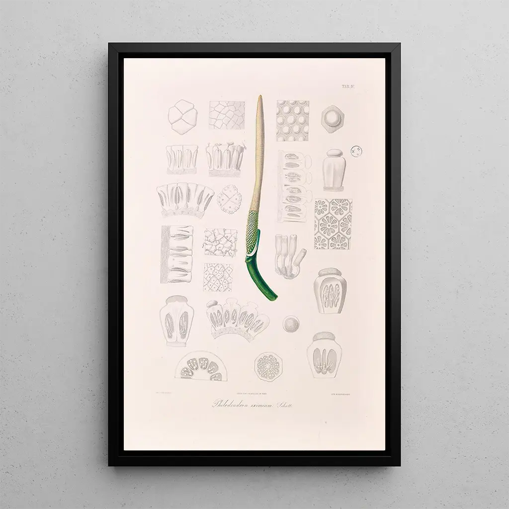 La riproduzione del quadro Icones Aroidearum Pl04 è un pezzo decorativo che saprà arricchire qualsiasi spazio, che si tratti di un soggiorno, di un ufficio o di una camera da letto. La qualità di stampa e la fedeltà ai dettagli originali ne fanno una scelta ideale per gli appassionati di botanica e d'arte. L'attrattiva estetica di questa tela risiede nella sua capacità di portare un tocco di natura nel vostro ambiente, stimolando conversazioni sulla bellezza delle piante. Integrando questa opera nella vostra decorazione, optate per un pezzo che unisce cultura, scienza e arte, aggiungendo un tocco di freschezza al vostro spazio.
