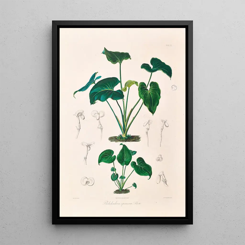 La riproduzione di "Icones Aroidearum Pl10" è un pezzo decorativo ideale per arricchire il vostro interno, che sia in un soggiorno, un ufficio o una camera da letto. La qualità di stampa e la fedeltà ai colori originali ne fanno una scelta attraente per gli appassionati di botanica e d'arte. Integrando questa stampa nella vostra decorazione, portate un tocco di eleganza e natura nel vostro spazio. L'attrattiva estetica di questa tela risiede nella sua capacità di creare un'atmosfera serena e ispirante, celebrando al contempo la bellezza della flora tropicale.