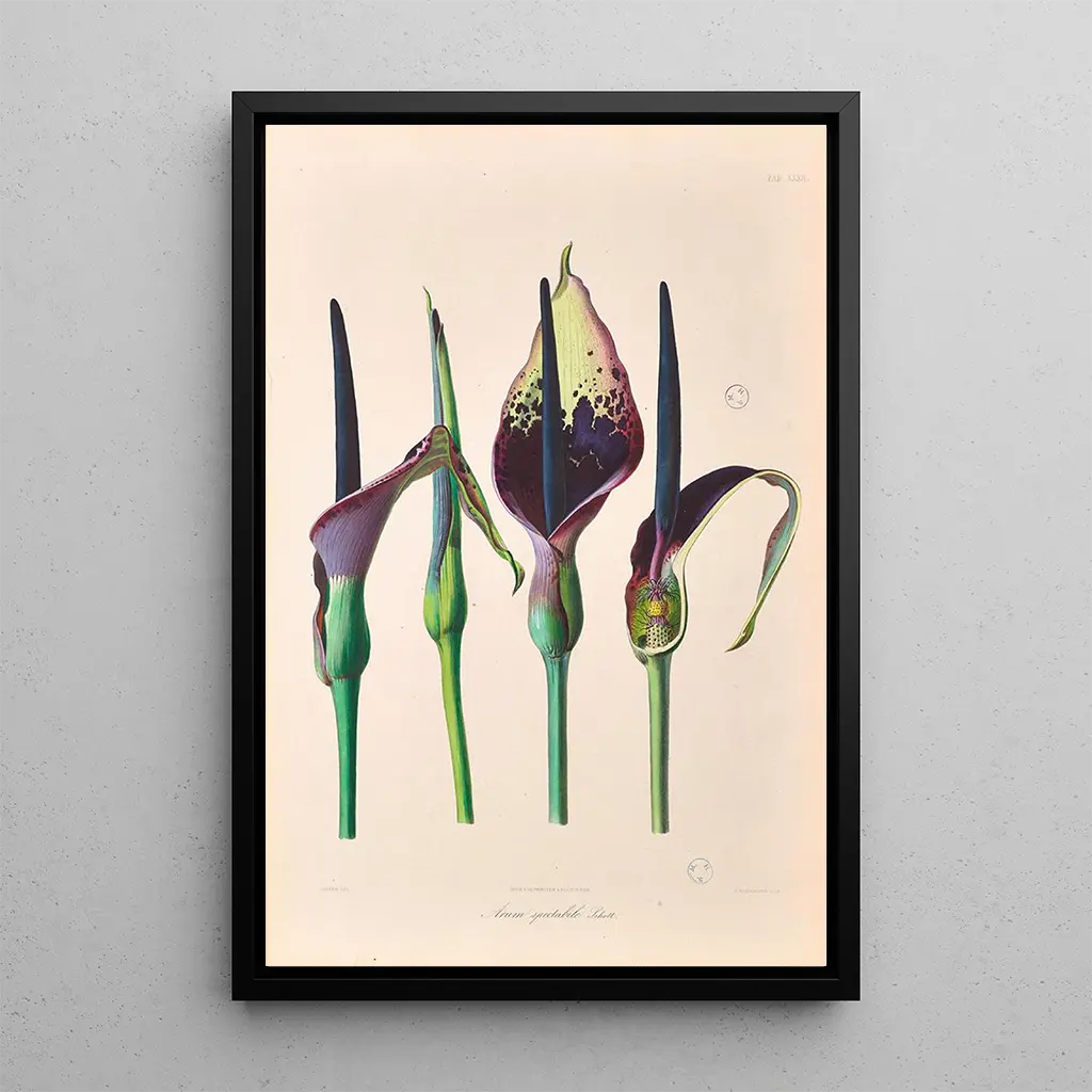 Icones Aroidearum Pl32 : un omaggio alla ricchezza floreale "Icones Aroidearum Pl32" di Heinrich Wilhelm Schott è un'opera affascinante che mette in luce la diversità delle aracee attraverso un'illustrazione ricca di dettagli. Ogni elemento di questa stampa d'arte è accuratamente riprodotto, dalle texture delle foglie alle sfumature delicate dei fiori. I colori vivaci, che vanno dal verde profondo alle tonalità brillanti, creano un'atmosfera vivace e dinamica. Questa tela invita all'esplorazione di un mondo botanico affascinante, dove ogni pianta racconta una storia unica, rivelando la bellezza della natura sotto una luce nuova. Heinrich Wilhelm Schott: l'artista botanico del XIX secolo Heinrich Wilhelm Schott, nato nel 1794, è una figura emblematica dell'illustrazione botanica, riconosciuto per i suoi studi approfonditi sulle aracee. Il suo lavoro si inserisce nel movimento romantico del XIX secolo, dove l'arte e la scienza si uniscono per celebrare la natura. Influenzato dalle esplorazioni botaniche della sua epoca, Schott ha saputo unire rigore scientifico e sensibilità artistica, producendo opere che sono sia riferimenti per i botanici sia pezzi d'arte a tutti gli effetti. La sua eredità perdura, ispirando nuove generazioni di artisti e scienziati. Un acquisto decorativo con molteplici vantaggi La stampa d'arte "Icones Aroidearum Pl32" è un pezzo decorativo che porterà un tocco di freschezza ed eleganza nel vostro ambiente. Che sia in un soggiorno, in uno studio o in una camera da letto, questa tela si distingue per la qualità di stampa e il suo fascino estetico. I dettagli minuziosi e i colori vivaci rendono quest'opera un vero punto focale, suscitando l'ammirazione dei vostri ospiti. Scegliendo questa stampa d'arte, integrate una parte della ricchezza botanica nel vostro arredamento, rendendo omaggio all'arte di Heinrich Wilhelm Schott.
