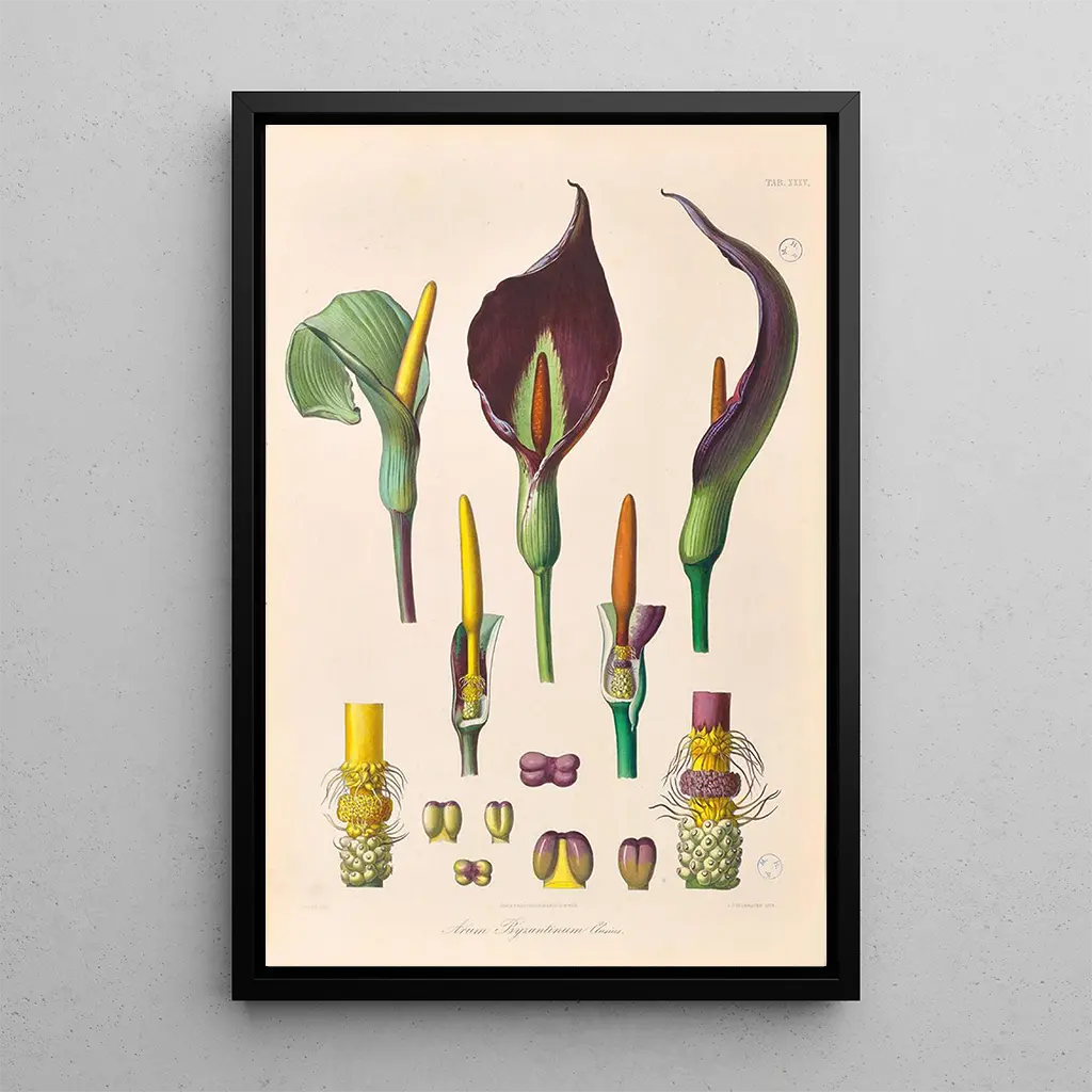 Icones Aroidearum Pl35 : una celebrazione della diversità botanica L'œuvre "Icones Aroidearum Pl35" di Heinrich Wilhelm Schott è una rappresentazione affascinante della ricchezza delle piante aroidi. Con colori vivaci e dettagli minuziosi, questa illustrazione botanica invita a un'esplorazione visiva delle forme e delle texture delle foglie. La tecnica di incisione utilizzata da Schott permette di catturare la delicatezza delle nervature e la luminosità del verde, creando un'atmosfera allo stesso tempo scientifica e poetica. Ogni elemento è accuratamente disposto, offrendo una composizione armoniosa che cattura l'occhio e stimola l'immaginazione. Heinrich Wilhelm Schott : pioniere della botanica illustrata Heinrich Wilhelm Schott, botanico austriaco del XIX secolo, è riconosciuto per i suoi contributi principali allo studio delle piante tropicali. La sua opera si inserisce nel movimento della stampa d'arte botanica, che mira a documentare la biodiversità floreale attraverso rappresentazioni precise e artistiche. Influenzato dalle esplorazioni botaniche del suo tempo, Schott ha dedicato la sua carriera allo studio delle Aroides, una famiglia di piante affascinanti. Il suo lavoro ha non solo arricchito la conoscenza scientifica, ma ha anche ispirato numerosi artisti e naturalisti, rendendolo una figura imprescindibile della sua epoca. Una riproduzione decorativa con molteplici vantaggi La riproduzione di "Icones Aroidearum Pl35" è una scelta ideale per abbellire diversi spazi come il soggiorno, l'ufficio o la camera da letto. La qualità di stampa garantisce fedeltà ai dettagli originali, permettendo di apprezzare appieno la bellezza di questa stampa d'arte botanica. Integrando questa tela nella vostra decorazione, portate un tocco di eleganza e natura nel vostro interno. L'attrattiva estetica di questa opera risiede nella sua capacità di suscitare conversazioni, offrendo al contempo un'atmosfera rilassante e ispiratrice.