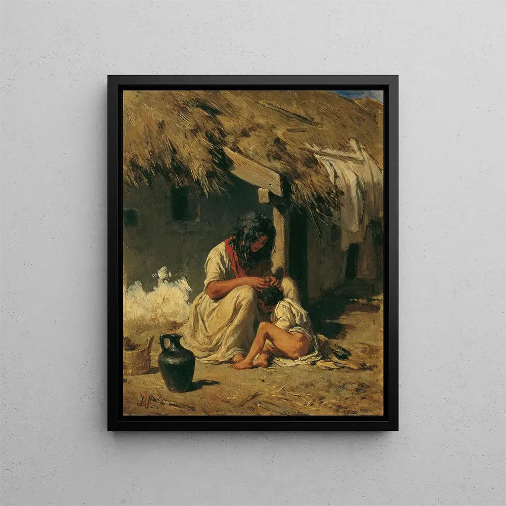 Nel ricco e vibrante panorama dell'arte del XIX secolo, l'opera "Idillio di un villaggio ungherese" di August von Pettenkofen si distingue per la sua capacità di catturare l'essenza di una vita rurale intrisa di serenità e semplicità. Questo dipinto, che evoca scene della campagna ungherese, ci trasporta in un mondo dove il tempo sembra sospeso, dove ogni elemento della natura e dell'architettura racconta una storia. Attraverso questa stampa d'arte, lo spettatore è invitato a immergersi in un quadro in cui la luce, il colore e la composizione si combinano per creare un'atmosfera allo stesso tempo pacifica e poetica. Stile e unicità dell’opera L'opera di August von Pettenkofen si caratterizza per uno stile realistico che sa coniugare l'osservazione minuziosa dei dettagli a un approccio quasi impressionista dei colori e della luce. In "Idillio di un villaggio ungherese", le delicate sfumature di verde, di blu e di terra si mescolano armoniosamente per evocare i paesaggi verdi della Ungheria. I personaggi, rappresentati in posture naturali e rilassate, si fondono nel paesaggio, illustrando una quotidianità intrisa di dolcezza. L'artista riesce a catturare non solo l'aspetto esteriore dei soggetti, ma anche l'emozione che emana dalla loro interazione con l'ambiente. Questa opera è un inno alla bellezza delle cose semplici, una celebrazione della vita rurale che risuona ancora oggi. L’artista e la sua influenza August von Pettenkofen, nato nel 1822 a Vienna, è una figura emblematica dell'arte austriaca del XIX secolo, il cui lavoro è stato influenzato dal movimento romantico e dal realismo. La sua passione per i paesaggi e la vita contadina lo ha portato a esplorare i villaggi ungheresi, dove ha tratto gran parte della sua ispirazione. Il suo approccio artistico, che combina una tecnica raffinata a una sensibilità profonda per la natura, ha lasciato un'impronta duratura sui suoi contemporanei e sulle generazioni successive. Pettenkofen è riuscito a trascendere la sua epoca offrendo una visione autentica ed emotiva della vita quotidiana, facendone un precursore nella rappresentazione delle scene rurali. La sua