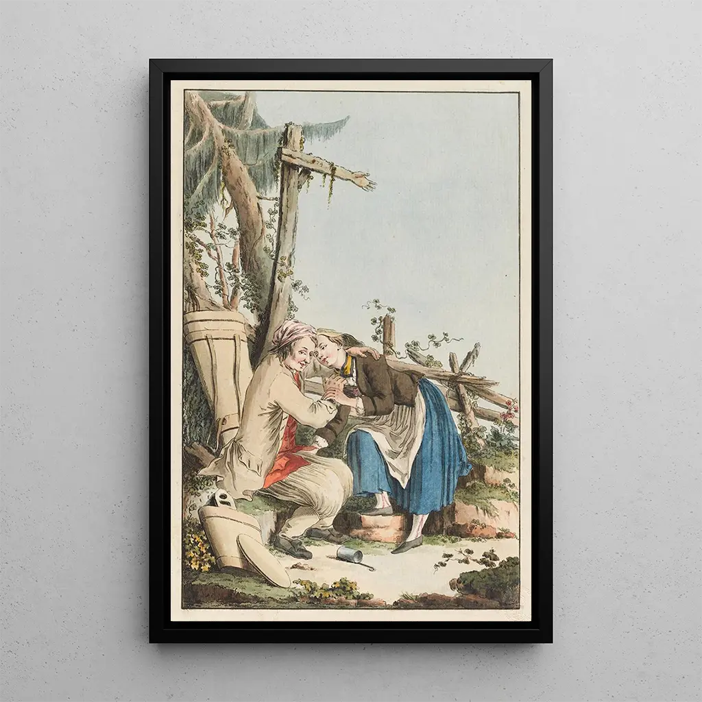 La stampa d'arte di "Le Laitier bernois" di Gottfried Locher raffigura una scena bucolica in cui il lattai, figura emblematico della vita rurale, si dedica con cura in un paesaggio verdeggiante. I colori vivaci e le sfumature delicate della tela evocano la freschezza della natura e la semplicità dei mestieri di un tempo. La tecnica di Locher, che combina realismo e tocchi impressionisti, crea un'atmosfera vivace e dinamica. Questo quadro invita lo spettatore ad apprezzare la bellezza dei gesti quotidiani e la connessione tra uomo e terra.