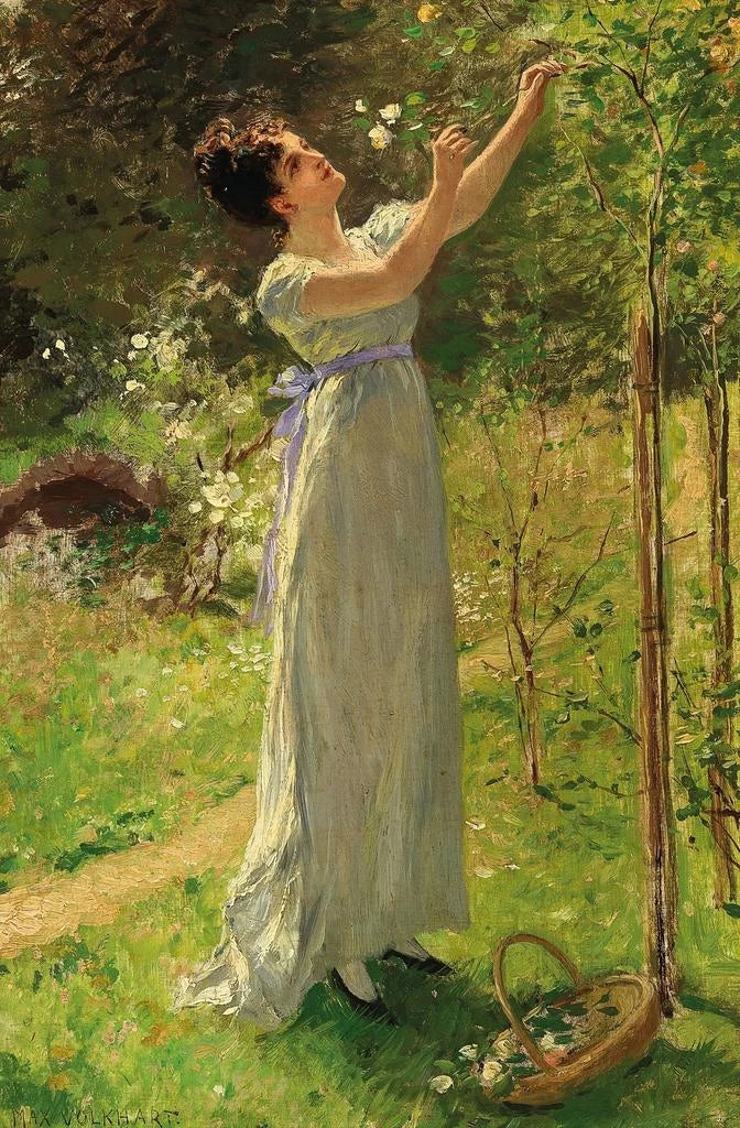 Nato nel 1851, Max Volkhart si è imposto come un maestro nella rappresentazione floreale, grazie anche al suo approccio innovativo e sensibile. Influenzato dal movimento impressionista, ha saputo catturare la luce e il colore in un modo che evoca la bellezza fugace della natura. Il suo lavoro è stato ampiamente riconosciuto, e ha partecipato a numerose esposizioni, dove le sue opere sono state lodate per la loro raffinatezza e espressività. Volkhart ha saputo lasciare il segno nella sua epoca trasformando scene di vita quotidiana in vere opere d'arte, celebrando la bellezza del mondo naturale.