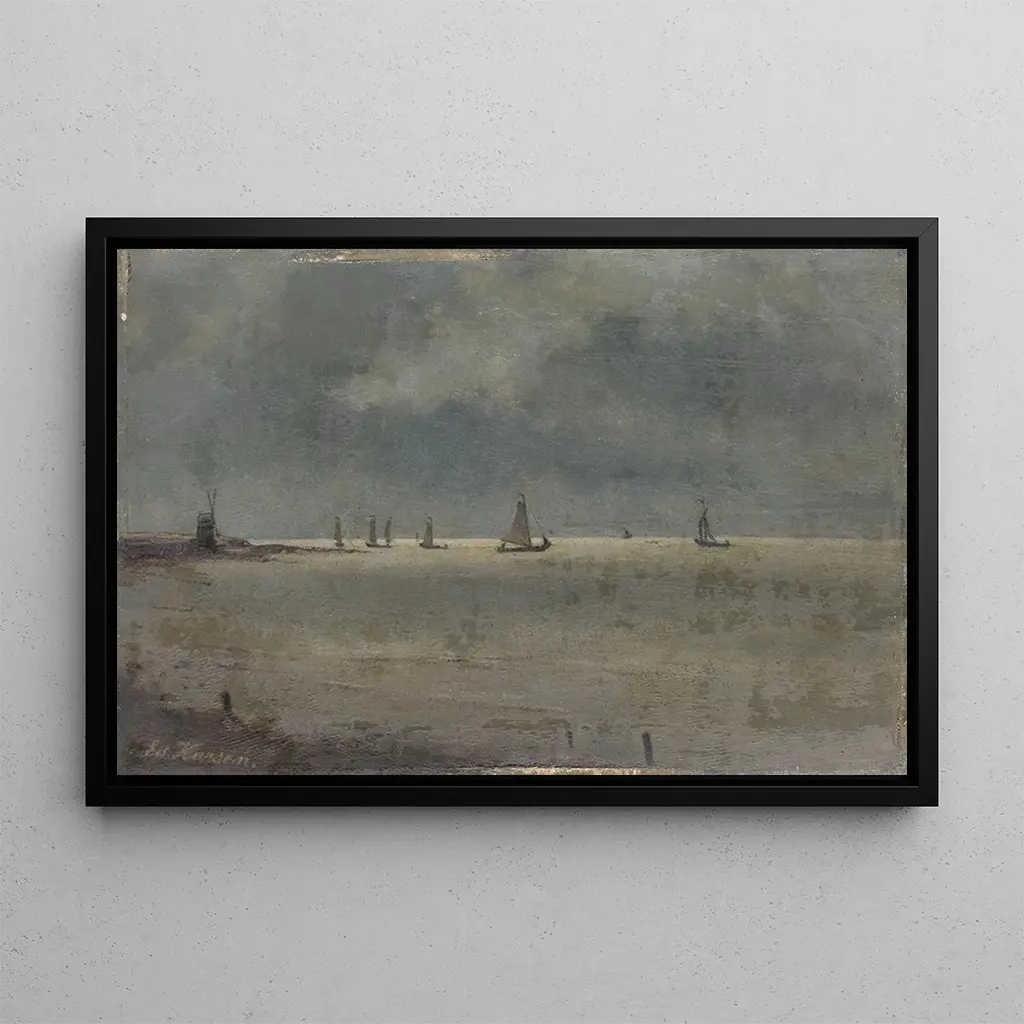 La stampa d'arte "Le Zuiderzee" di Eduard Karsen evoca un'atmosfera pacifica in cui le sfumature di blu e di verde si mescolano armoniosamente. La composizione mette in evidenza un paesaggio marino, con delle vele che scivolano dolcemente sulle acque calme, mentre il cielo, punteggiato di nuvole leggere, riflette una luce dolce e rasserenante. Karsen utilizza una tecnica di pittura ad olio che dà vita ai dettagli, dalle onde delicate ai riflessi scintillanti sulla superficie dell'acqua. L'opera invita alla contemplazione, trasportando lo spettatore in un momento di tranquillità sul bordo dell'acqua.