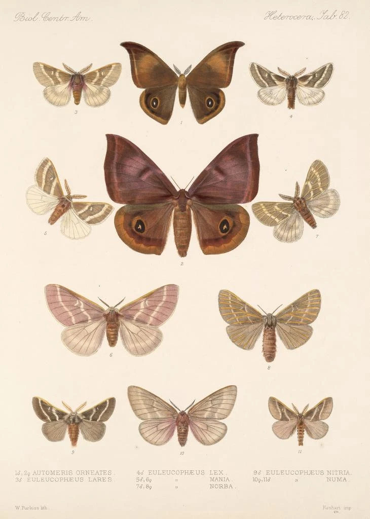 Frederick DuCane Godman, naturalista e artista del XIX secolo, ha saputo unire le sue passioni per l'arte e l'entomologia. Le sue opere, tra cui "Insecta Lepidoptera Heterocera Pl 082", si distinguono per la loro precisione scientifica e per un'estetica raffinata. Godman è stato influenzato dal movimento vittoriano, che valorizzava la natura e la scienza, e ha collaborato con altri ricercatori per arricchire le sue conoscenze. Il suo lavoro ha contribuito non solo alla documentazione delle specie, ma anche a sensibilizzare il pubblico sulla bellezza e sulla diversità del mondo naturale, rendendolo una figura di rilievo nel campo della stampa d'arte entomologica.