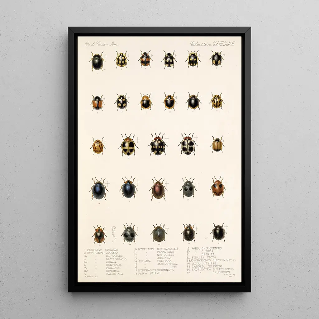Insecta Coleoptera Pl 299 : un'ode alla bellezza degli insetti L'œuvre "Insecta Coleoptera Pl 299" di Frederick DuCane Godman è un'illustrazione affascinante che cattura l'essenza dei coleotteri con una precisione notevole. I colori vivaci e i dettagli minuziosi di ogni insetto rivelano un'atmosfera allo stesso tempo scientifica e artistica. Godman, utilizzando tecniche di incisione e acquerello, riesce a trasmettere la diversità e la complessità di queste creature. Ogni elemento della composizione, dalle ali delicate alle texture dei corpi, invita a una contemplazione attenta e meravigliata, facendo di questa stampa d'arte un vero capolavoro di osservazione naturalistica. Frederick DuCane Godman : un pioniere dell'entomologia artistica Frederick DuCane Godman, attivo nel XIX secolo, è riconosciuto per il suo ruolo essenziale nello studio e nella rappresentazione degli insetti. Naturalista ed entomologo, ha dedicato la sua vita alla documentazione della biodiversità, influenzato dalle scoperte della sua epoca e da viaggi in tutto il mondo. La sua collaborazione con altri scienziati ha permesso di produrre opere che uniscono rigore scientifico ed estetica. Godman ha così contribuito all'espansione dell'entomologia, facendo delle sue illustrazioni dei riferimenti imprescindibili per appassionati e ricercatori. "Insecta Coleoptera Pl 299" è un esempio emblematico del suo lascito, unendo arte e scienza. Una riproduzione decorativa con molteplici vantaggi La riproduzione di "Insecta Coleoptera Pl 299" costituisce un'aggiunta decorativa ideale per diversi spazi, che si tratti di un soggiorno, di un ufficio o di una camera da letto. La qualità di stampa e la fedeltà ai dettagli originali rendono questa tela una scelta attraente per gli appassionati di natura e di arte. Integrando questa opera nella tua decorazione, porti un tocco di eleganza e di erudizione nel tuo ambiente. L'attrattiva estetica di questa stampa d'arte non mancherà di suscitare curiosità e di ispirare conversazioni sulla bellezza del mondo naturale.