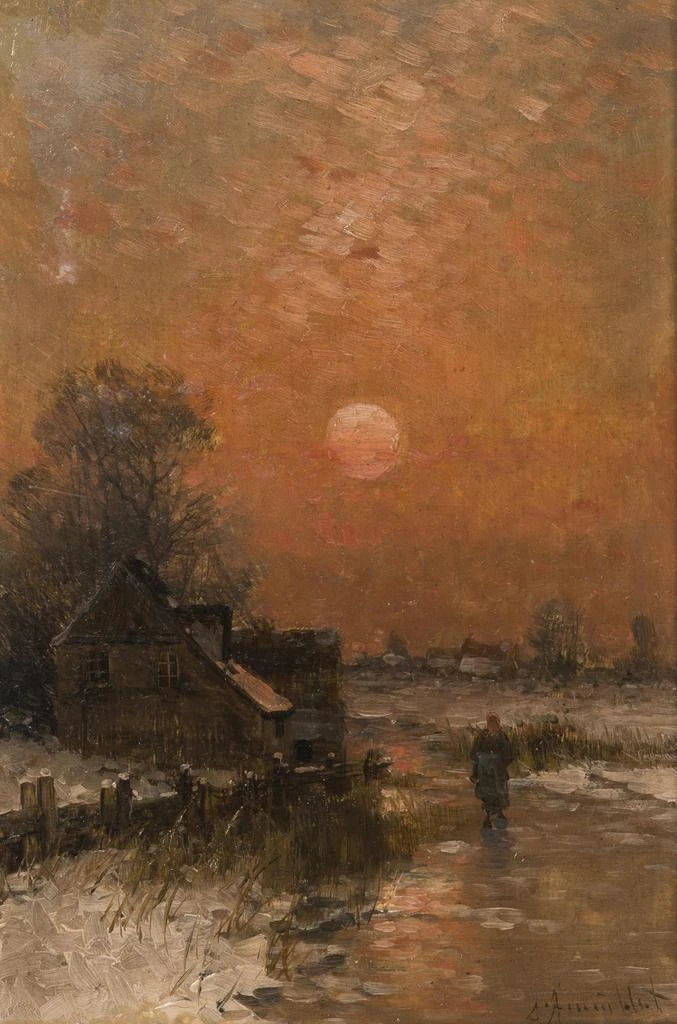 In "Hiver", Johann Jungblut cattura l'essenza stessa della stagione fredda con una delicatezza sorprendente. La tela presenta un paesaggio innevato, dove la neve ricopre il suolo e gli alberi, creando un quadro monocromatico di una bellezza pura. Le sfumature di bianco, di blu e di grigio si mescolano armoniosamente, evocando la calma e la tranquillità di una mattina d'inverno. La tecnica di Jungblut, che gioca sulla luce e l'ombra, dà vita a questa scena pacifica, invitando lo spettatore a percepire la freschezza dell'aria e la dolcezza della neve.