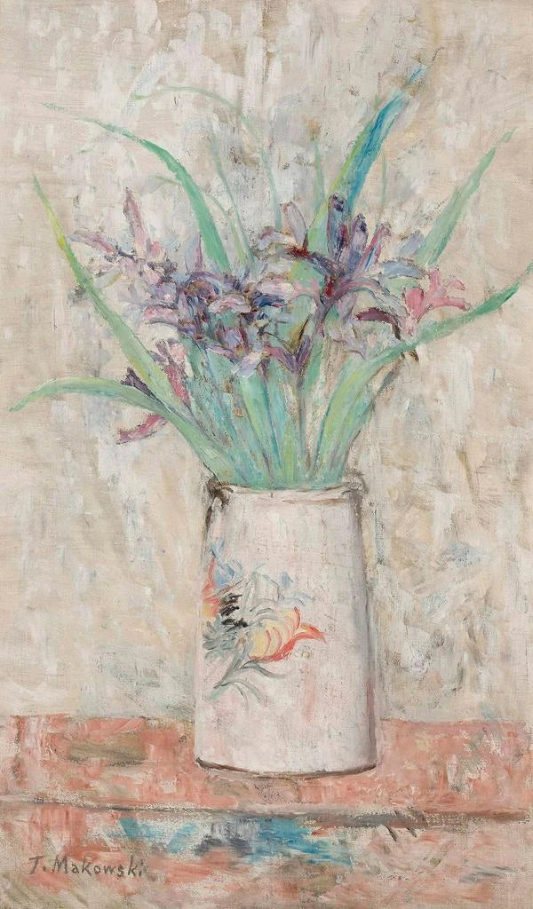 Tadeusz Makowski, nato in Polonia, si è imposto come una figura di rilievo nell’arte all’inizio del XX secolo. Il suo stile, influenzato dall’impressionismo, si caratterizza per una palette luminosa e un’attenzione particolare ai dettagli. Makowski è stato segnato dagli eventi della sua epoca, che hanno alimentato la sua opera con una profondità emotiva. « Iris dans un vase blanc » illustra perfettamente il suo talento nel catturare la bellezza effimera della natura, integrando anche una dimensione simbolica. Il suo lavoro continua a ispirare numerosi artisti e appassionati d’arte, testimonianza della sua importanza nella storia dell’arte.