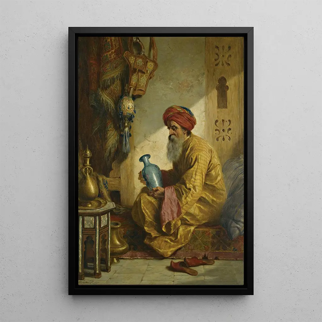 Ispezione del vaso: un'ode alla bellezza degli oggetti quotidiani L'œuvre "Inspection du vase" de John Adam Houston nous plonge dans une atmosphère délicate où l'objet devient le protagoniste d'une scène intimiste. La composition est soigneusement orchestrée, mettendo in risalto un vaso riccamente decorato, circondato da dettagli sottili che attirano lo sguardo. I colori, dolci e armoniosi, creano un'atmosfera rilassante, mentre la tecnica di pittura ad olio rivela una padronanza impressionante dei riflessi e delle texture. Houston riesce a catturare la luce in modo tale da dare vita all'oggetto, invitando lo spettatore a fermarsi e a contemplare la bellezza delle cose semplici. John Adam Houston: un testimone dell'arte vittoriana John Adam Houston, attivo nel XIX secolo, è un artista britannico il cui lavoro si inscrive nel movimento vittoriano. Influenzato dalla natura e dagli oggetti quotidiani, ha saputo sviluppare uno stile che unisce realismo e sensibilità poetica. Houston si è formato all'Accademia reale delle belle arti, dove ha perfezionato il suo talento prima di farsi conoscere per le sue nature morte e le scene di genere. La sua opera testimonia di un'epoca in cui l'arte doveva catturare la bellezza effimera della vita, riflettendo allo stesso tempo i valori estetici del suo tempo. "Inspection du vase" si inserisce perfettamente in questa tradizione, celebrando la bellezza degli oggetti che ci circondano. Una acquisizione decorativa con molteplici vantaggi La riproduzione di "Inspection du vase" è un pezzo decorativo che saprà arricchire il vostro interno, sia in un salotto, in uno studio o in una camera da letto. La qualità di stampa garantisce una fedeltà notevole all'opera originale, permettendo di apprezzare ogni dettaglio con una chiarezza sorprendente. Questo quadro aggiunge un tocco di eleganza e serenità alla vostra decorazione, stimolando conversazioni sull'arte e sulla bellezza degli oggetti quotidiani. Integrando questa tela nel vostro spazio, fate la scelta di un'opera che unisce estetica e storia, portando un'atmosfera calda e raffinata.