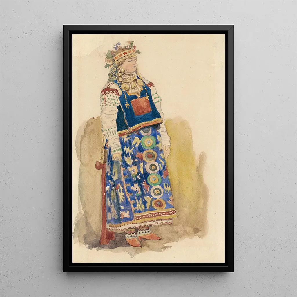 Victor Mikhailovich Vasnetsov, nato nel 1848, è uno degli artisti più influenti del movimento simbolista in Russia. La sua carriera inizia in un contesto in cui l'arte russa cerca di affermarsi di fronte alle influenze occidentali. Vasnetsov si ispira ai racconti popolari e alla mitologia slava, cercando di riscoprire e celebrare l'identità culturale del suo paese. Le sue opere, spesso intrise di mistero e poesia, testimoniano una ricerca costante di armonia tra l'uomo e la natura. Kupava, in particolare, illustra il suo impegno verso la tradizione integrando anche elementi di modernità.