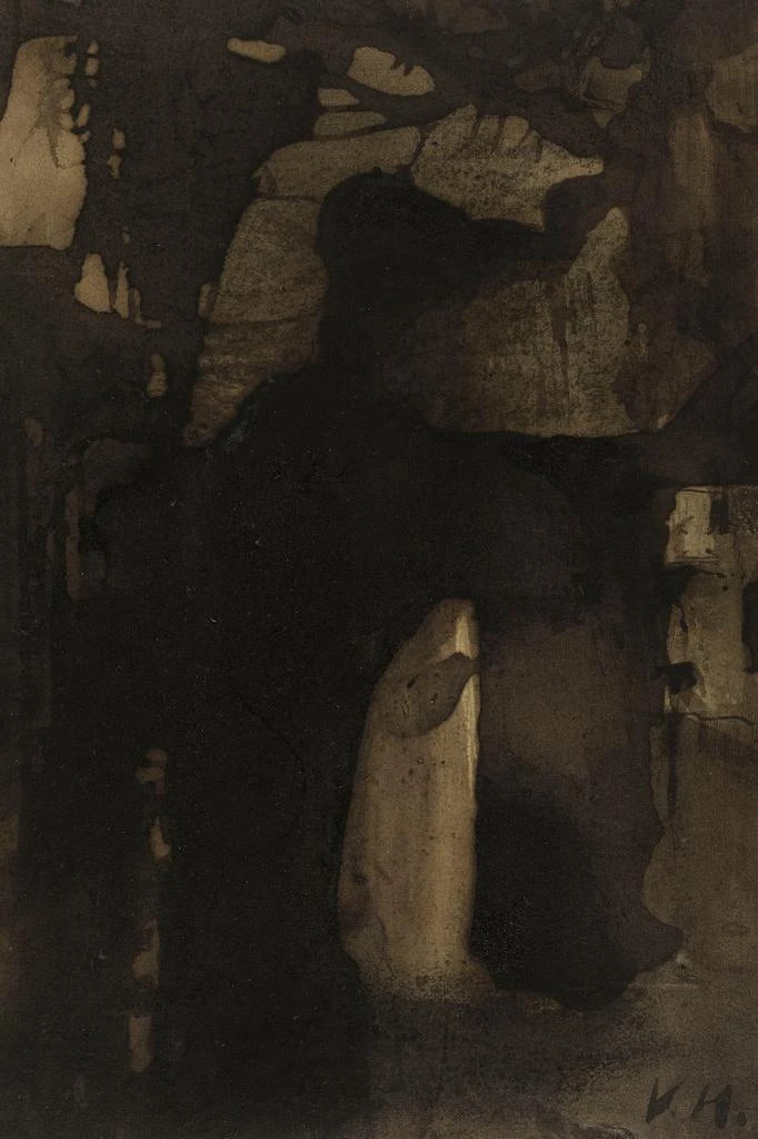 La stampa d'arte di La Bouche d'ombre ci trasporta in un universo dove le ombre e le luci danzano in armonia. I colori scuri, quasi mistici, si mescolano a tocchi di luce che evocano una profondità emotiva. La tecnica di Victor Hugo, che unisce il disegno e la pittura, crea un'atmosfera allo stesso tempo intrigante e malinconica. Questo quadro, vero riflesso della sua anima tormentata, ci invita a esplorare gli angoli oscuri della nostra stessa esistenza, offrendo al contempo una visione poetica della natura umana.