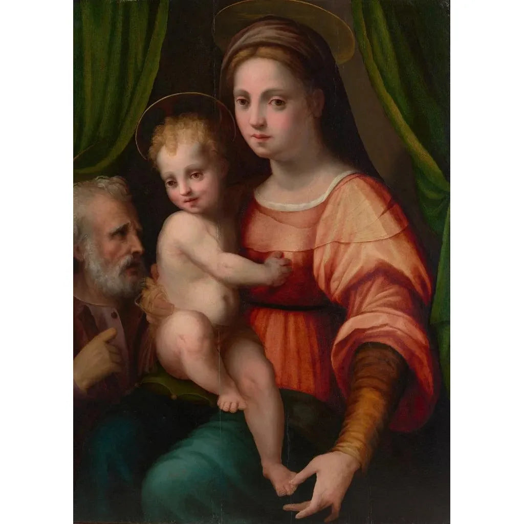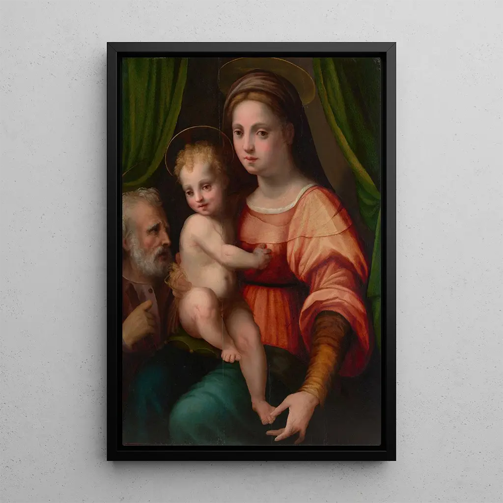 La Sainte Famille : un'armonia sacra e rasserenante La stampa d'arte di La Sainte Famille evoca un'atmosfera di serenità e protezione. Le figure di Maria, Giuseppe e il Bambino Gesù sono rappresentate con una tenerezza palpabile, le loro espressioni dolci e benevoli. I colori caldi, dominati da toni ocra e dorati, creano un'atmosfera accogliente, mentre la luce sembra emanare dalla scena stessa, illuminando i volti dei personaggi. La tecnica di Domenico Puligo, mescolando chiaroscuro e dettagli minuziosi, dà vita a questa opera, invitando lo spettatore a contemplare la bellezza della vita familiare sacra. Domenico Puligo : un maestro del Rinascimento fiorentino Domenico Puligo, attivo nel XVI secolo, è un artista del Rinascimento italiano il cui lavoro riflette le influenze dei suoi contemporanei, in particolare Michelangelo e Raffaello. Operando nel contesto fiorentino, ha saputo unire tradizione e innovazione, creando opere che testimoniano la ricchezza spirituale del suo tempo. Sebbene meno conosciuto di alcuni dei suoi pari, Puligo ha lasciato il suo segno con composizioni armoniose e rappresentazioni toccanti della vita religiosa. La Sainte Famille è un esempio emblematico del suo stile, illustrando il suo talento nel catturare emozione e devozione. Un acquisto decorativo con molteplici vantaggi Optare per una stampa d'arte di La Sainte Famille significa scegliere una tela che porterà un tocco di eleganza e spiritualità nel vostro ambiente. Che sia in un soggiorno, uno studio o una camera da letto, questa opera si integra armoniosamente in vari decori, aggiungendo una dimensione contemplativa al vostro spazio. La qualità della stampa garantisce fedeltà ai dettagli originali, offrendo allo stesso tempo un'attrattiva estetica indiscutibile. Questa tela diventa così un punto focale, suscitando ammirazione e riflessione, arricchendo il vostro ambiente con la sua presenza rasserenante.