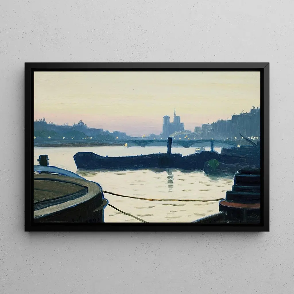 La Seine : un reflet poétique de la nature La Seine, tableau emblématique de Charles Guilloux, évoque une douce harmonie entre l'eau et le paysage environnant. Les nuances de bleu et de vert se mêlent pour créer une atmosphère sereine, où la lumière joue sur la surface de l'eau, invitant à la contemplation. La technique de Guilloux, qui allie précision et impressionnisme, donne vie à cette scène naturelle, rendant chaque détail vivant. Les silhouettes des arbres se dessinent avec délicatesse, tandis que le mouvement de l'eau semble presque palpable, transportant le spectateur dans un moment suspendu. Charles Guilloux : un maître de l'impressionnisme français Charles Guilloux, actif à la fin du XIXe siècle et au début du XXe siècle, est un artiste souvent associé au mouvement impressionniste. Influencé par des maîtres tels que Monet et Pissarro, il a su développer un style unique qui capture la beauté des paysages français. Son œuvre est marquée par une attention particulière aux effets de lumière et aux variations de couleur, caractéristiques de son époque. Bien que moins connu que certains de ses contemporains, Guilloux a laissé un héritage artistique précieux, témoignant de l'évolution de la peinture paysagère au tournant du siècle. Une acquisition décorative aux multiples atouts La reproduction de La Seine est une pièce décorative qui saura embellir tout espace, que ce soit un salon, un bureau ou une chambre. Sa qualité d'impression et sa fidélité à l'œuvre originale en font un choix idéal pour les amateurs d'art. Avec son attrait esthétique, ce tableau apporte une touche de sérénité et de nature à votre intérieur. En choisissant cette toile, vous optez pour une décoration raffinée qui évoque la beauté intemporelle des paysages français, tout en enrichissant votre environnement quotidien.