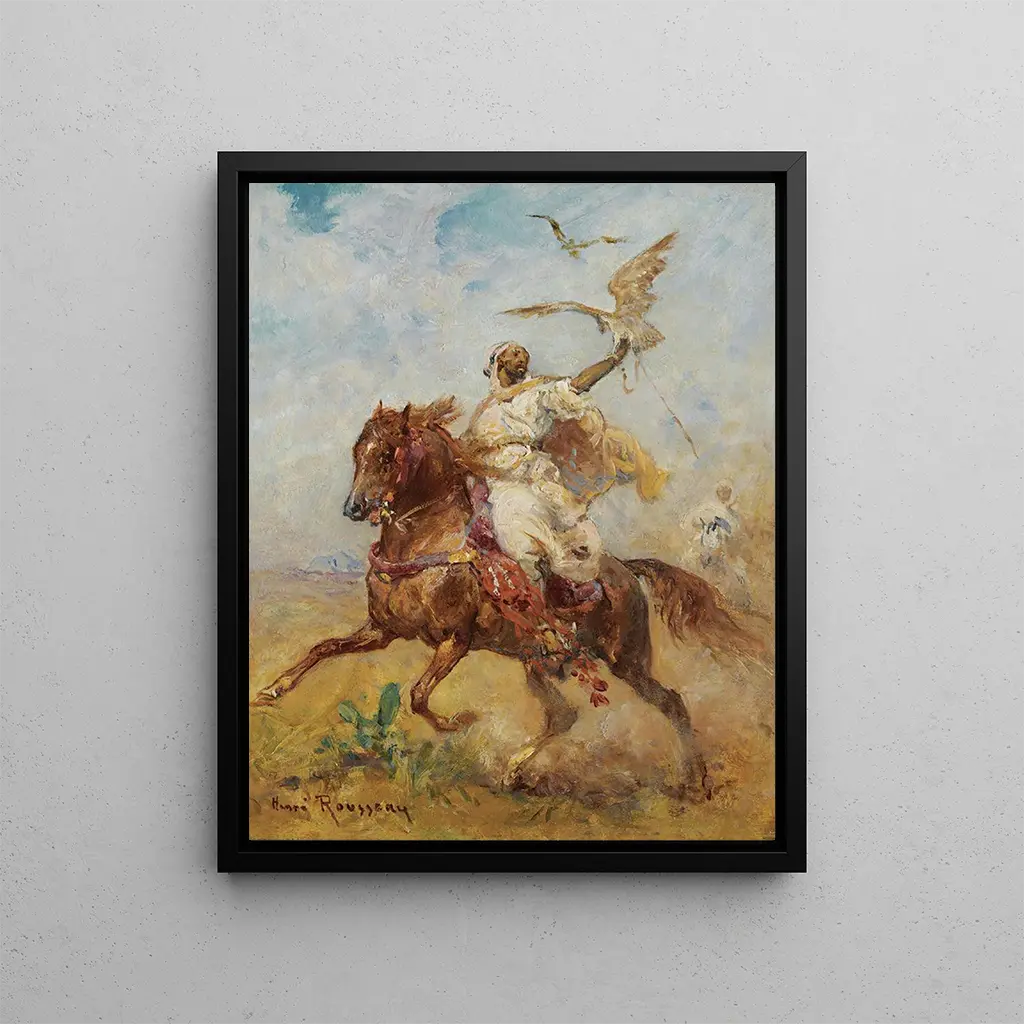 Le fauconnier : una scena di nobiltà e tradizione In "Le fauconnier", Henri Émilien Rousseau ci immerge in un'atmosfera intrisa di nobiltà e tradizione. La tela raffigura un uomo in abiti d'epoca, con un falco sulla mano, simbolo di caccia e maestria. I colori ricchi e profondi, che vanno dai toni terrosi ai verdi lussureggianti, creano un'armonia visiva affascinante. La tecnica di Rousseau, che combina realismo e tocchi impressionisti, dà vita a ogni dettaglio, dal piumaggio dell'uccello alle texture dei vestiti. Quest'opera invita alla contemplazione, evocando un mondo in cui l'uomo e la natura coesistono in perfetta simbiosi. Henri Émilien Rousseau : un maestro del realismo nel cuore del XIX secolo Henri Émilien Rousseau, attivo nel XIX secolo, è un artista il cui lavoro si distingue per attenzione ai dettagli e rispetto delle tradizioni artistiche. Influenzato dal realismo e dall'impressionismo, è riuscito a catturare momenti della vita quotidiana con una sensibilità unica. Rousseau ha spesso esplorato temi legati alla natura e alla vita rurale, riflettendo le preoccupazioni della sua epoca. La sua opera "Il falconiere" testimonia questa ricerca di autenticità e una profonda ammirazione per le tradizioni della caccia, un soggetto molto apprezzato dall'aristocrazia del suo tempo. Il suo contributo all'arte francese rimane significativo, segnando una transizione verso stili più moderni. Un acquisto decorativo con molteplici vantaggi La riproduzione di "Il falconiere" è un pezzo decorativo che saprà arricchire il vostro interno, sia in un salotto, in uno studio o in una camera da letto. La qualità di stampa garantisce una fedeltà notevole ai colori e ai dettagli dell'opera originale, permettendo di apprezzare l'estetica di Rousseau nel vostro spazio di vita. Questo quadro apporta un tocco di eleganza e raffinatezza, suscitando anche l'ammirazione dei visitatori. Scegliendo questa tela, optate per un elemento decorativo che unisce storia, arte e bellezza, creando così un'atmosfera calda e accogliente.